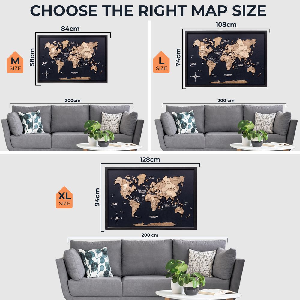 PLEASE NOTE: The map is not a geographical one, some smaller countries and islands may be omitted. Each Map is unique and shades vary because it's made of natural wood.