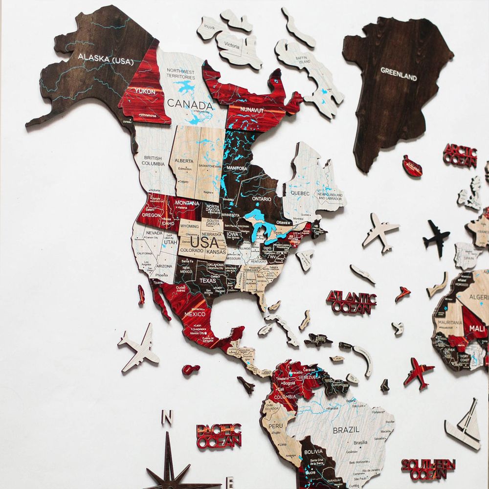 3D Wooden World Map - Urban | XXL (300 x 175cm)