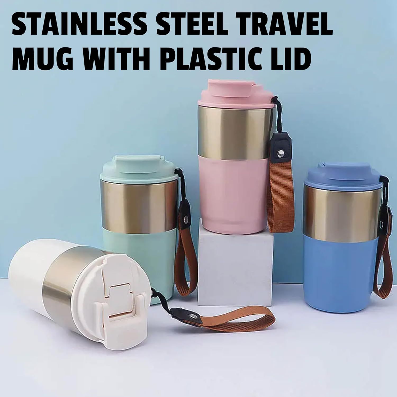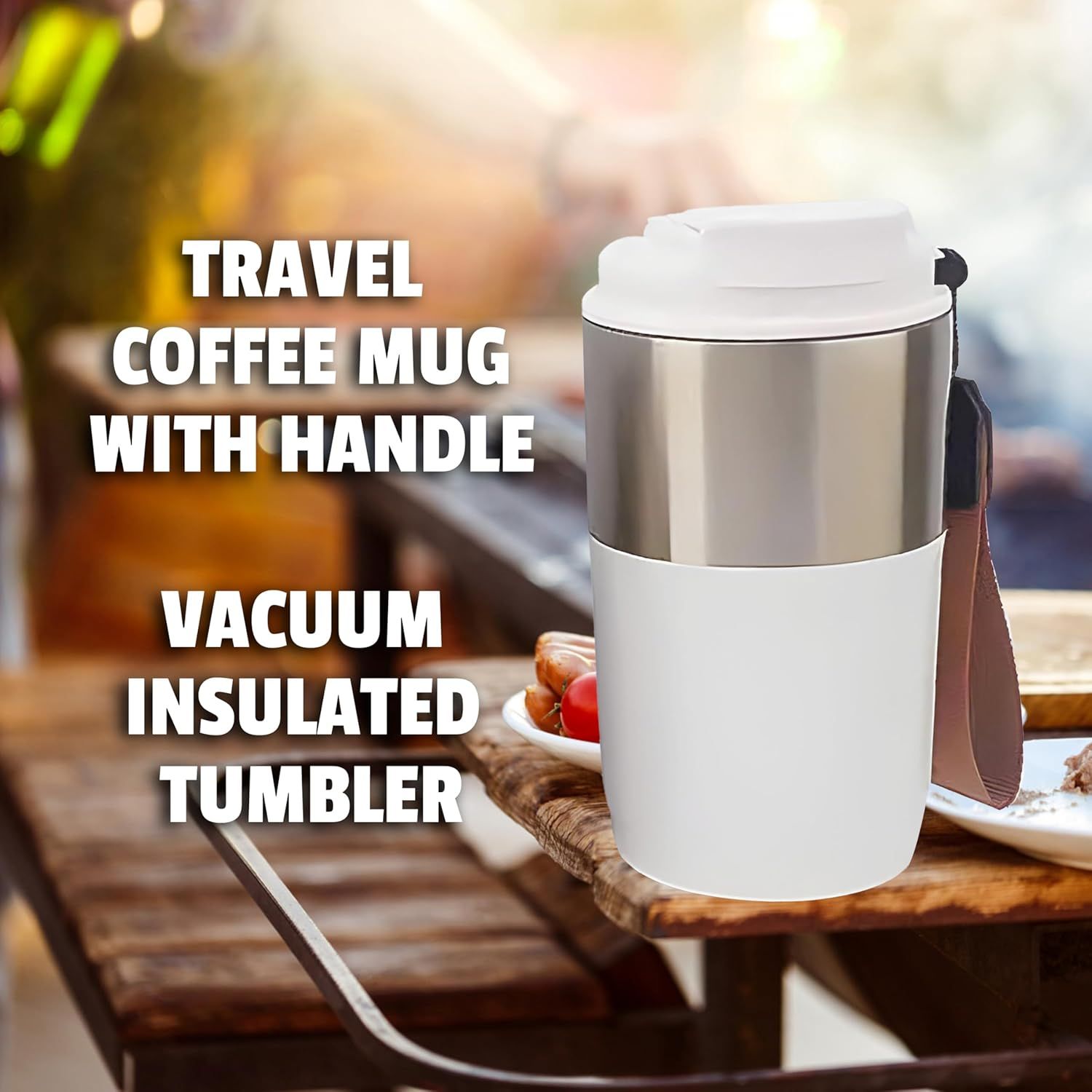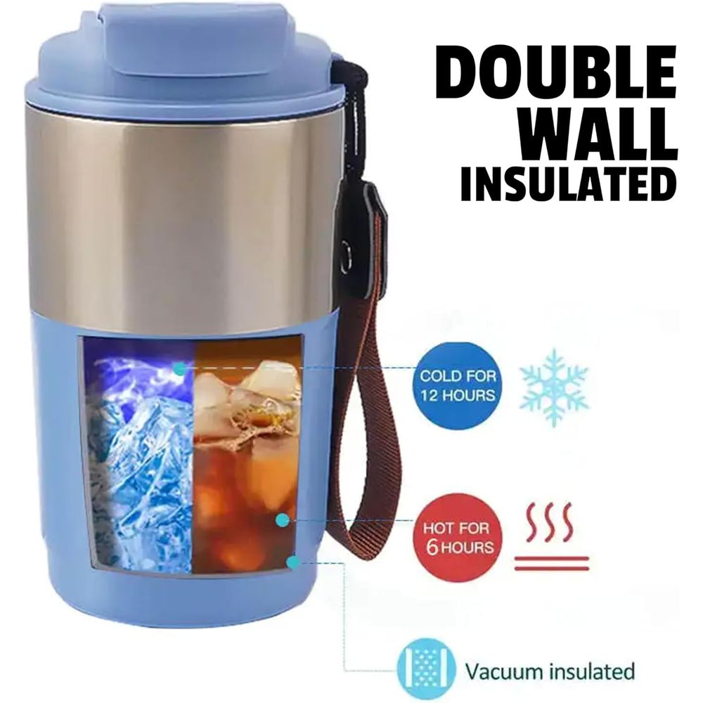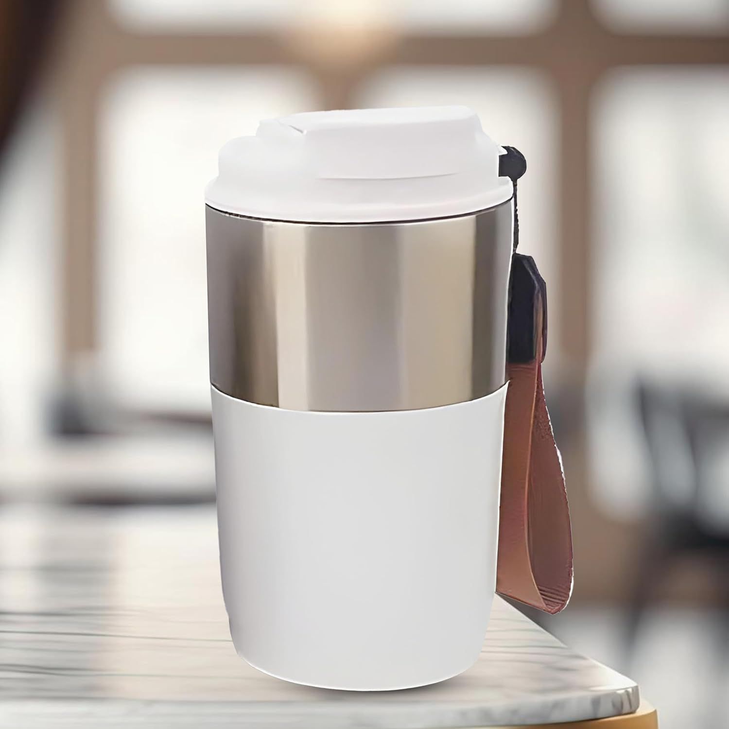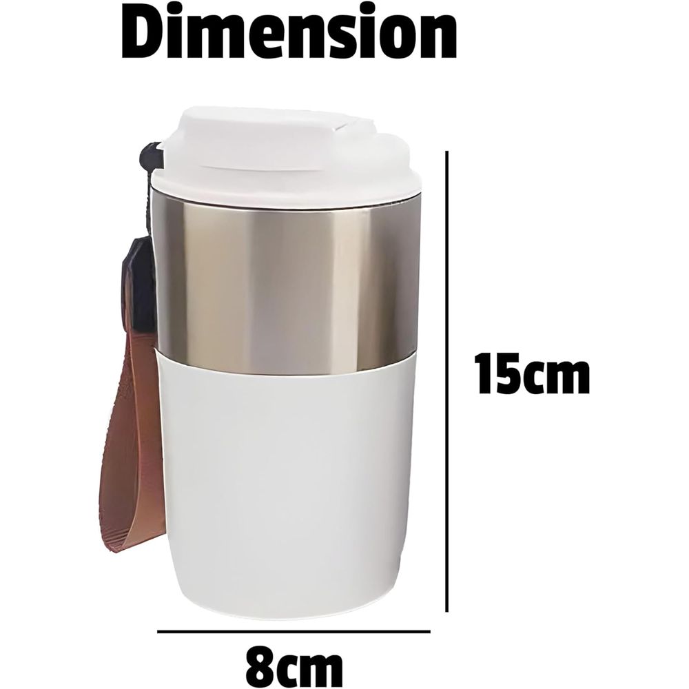 420ml Vacuum Insulated Tumbler With Leak-Proof Lid, Double Wall Stainless Steel Travel Mug With Strap For Hot And Cold Beverages, Colour: White