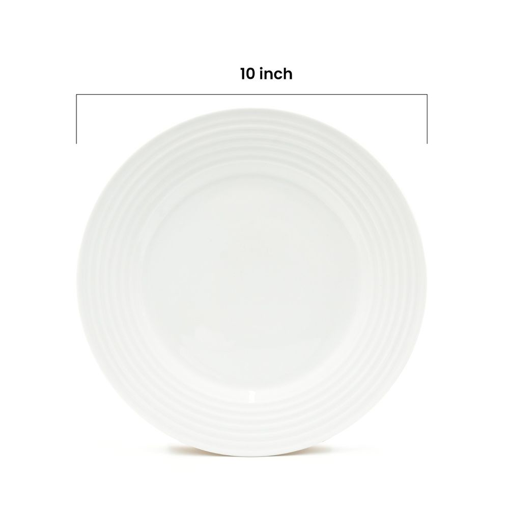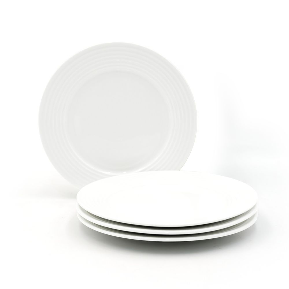 4pc Ceramic Dinner Plate Set Ripple Large Round Durable White Lightweight Dinnerware Microwave Safe Heavy-Duty Kitchen Plates for Dining Serving Everyday Meals Modern Home Tableware