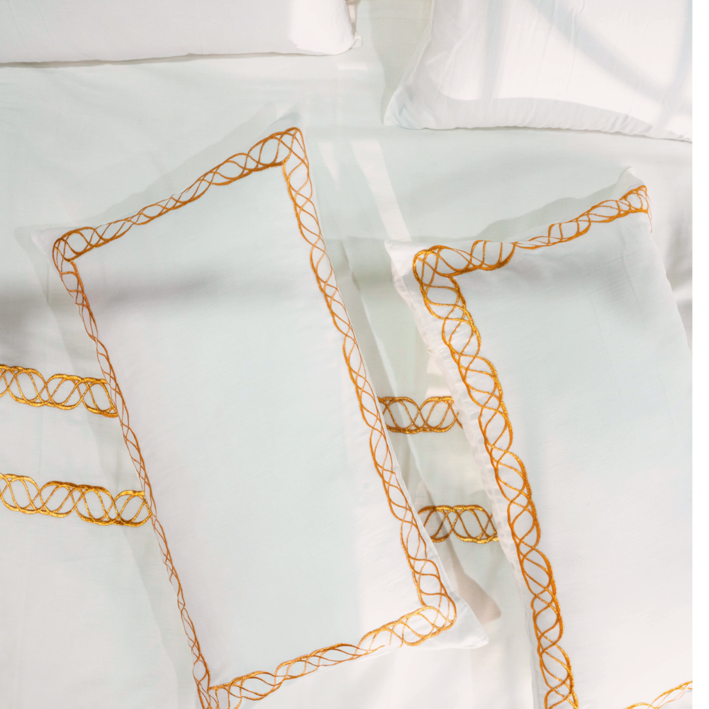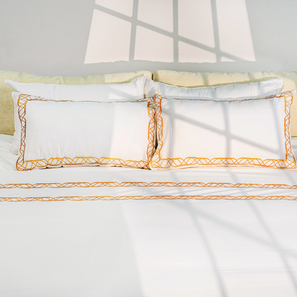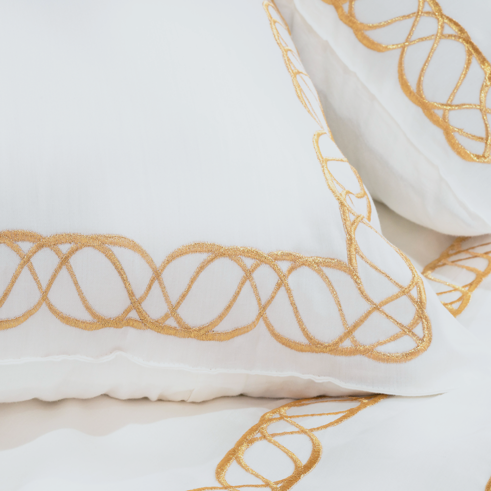 5 Pcs Duvet Cover Set 260X240Cm Pure Cotton With Gold Chain Embroidery Made For Queen, King, And Super King Size Bed