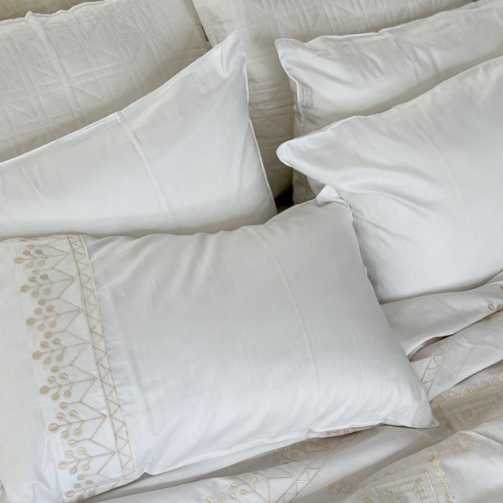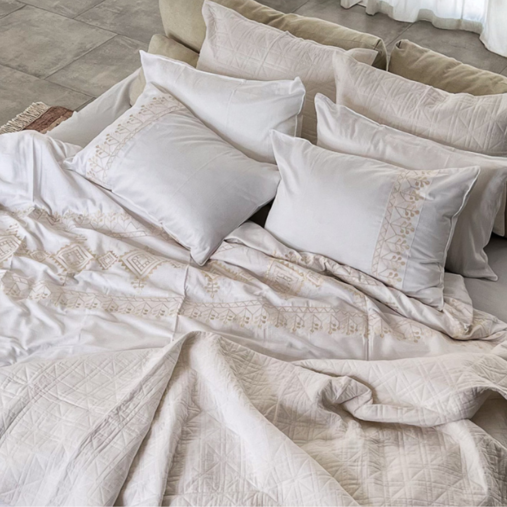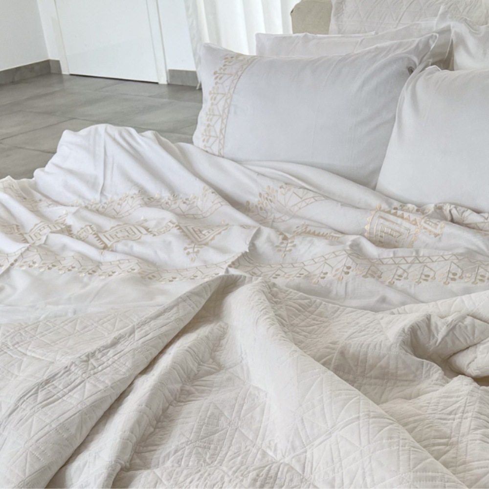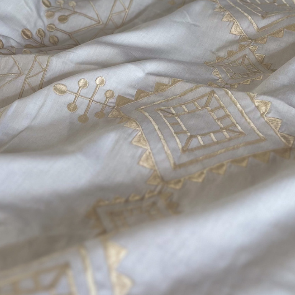 5 Pcs Duvet Cover Set 260X240Cm Pure Cotton With Light Gold Embroidery Made For Queen, King, And Super King Size Bed