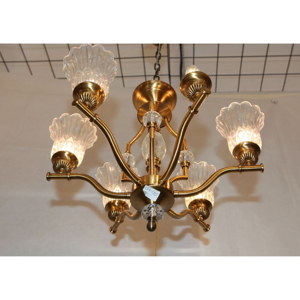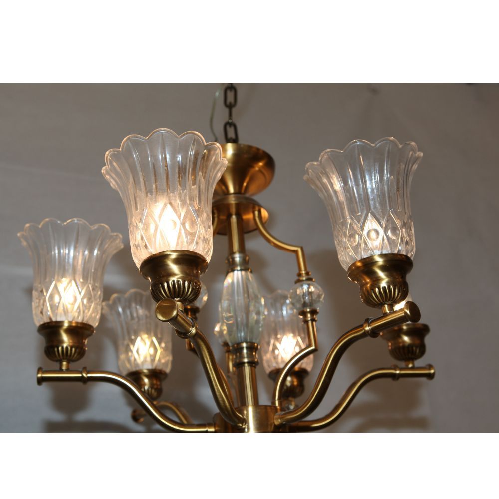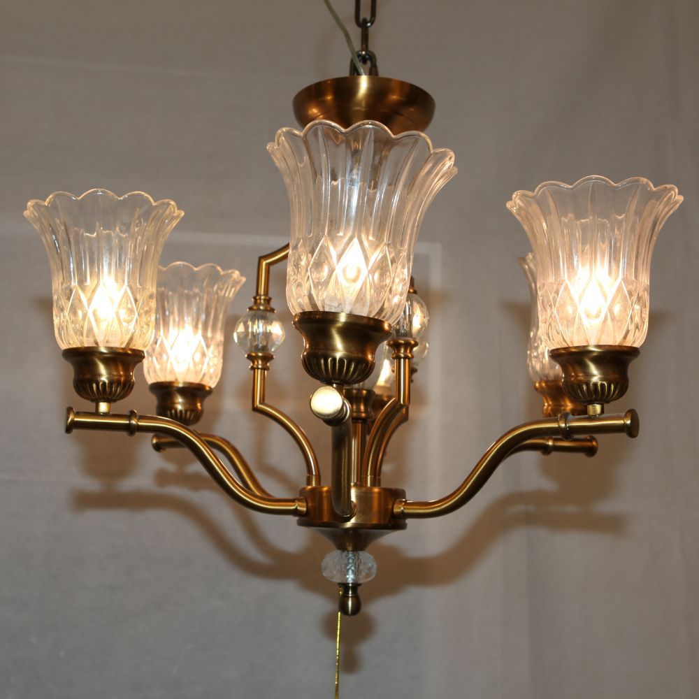 6-light Gold Plated Brass and Glass Chandelier,