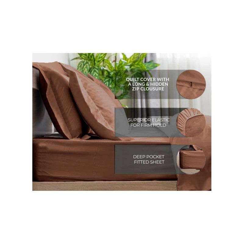 6-Piece Luxury King Size Dark Brown Striped Bedding Set, Microfiber Fitted Sheet, Duvet Cover & 4 Pillowcases