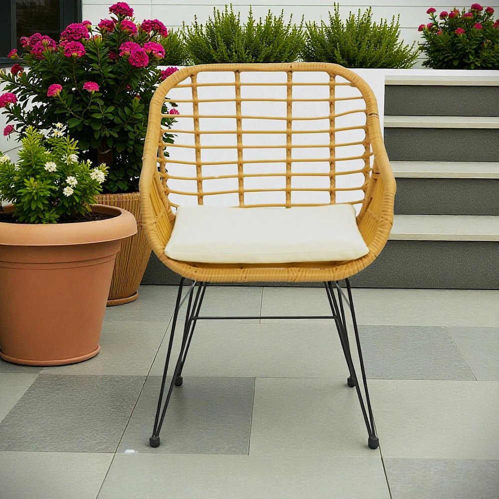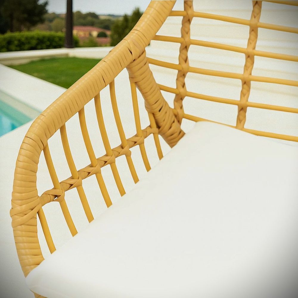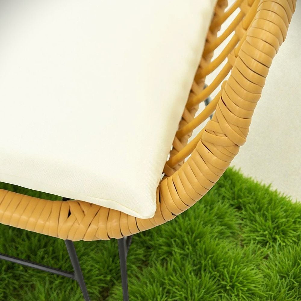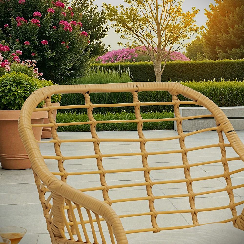 6-Seater Modern Outdoor Dining Set – Beige Rattan-Style Chairs with Steel Frame & Glass-Top Table