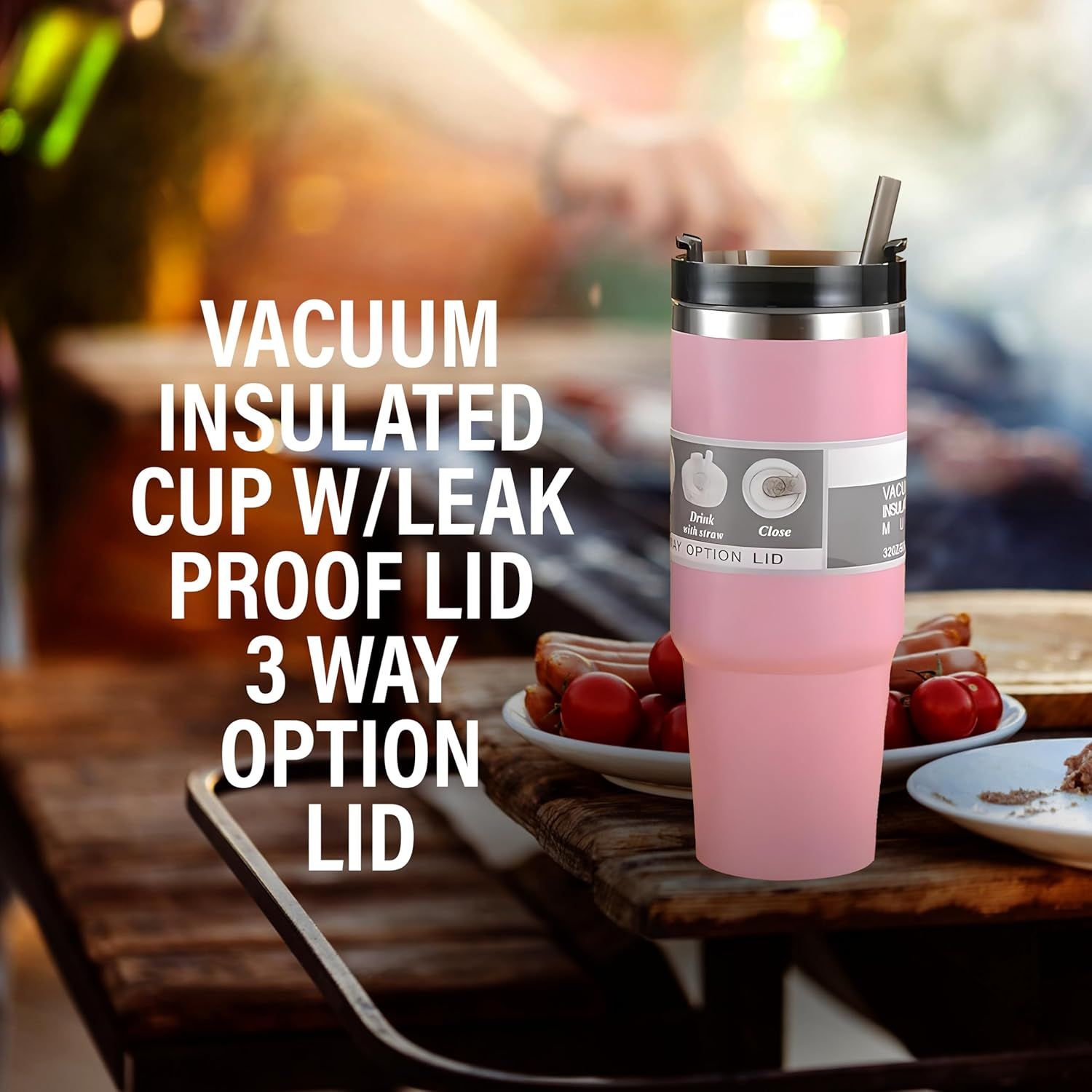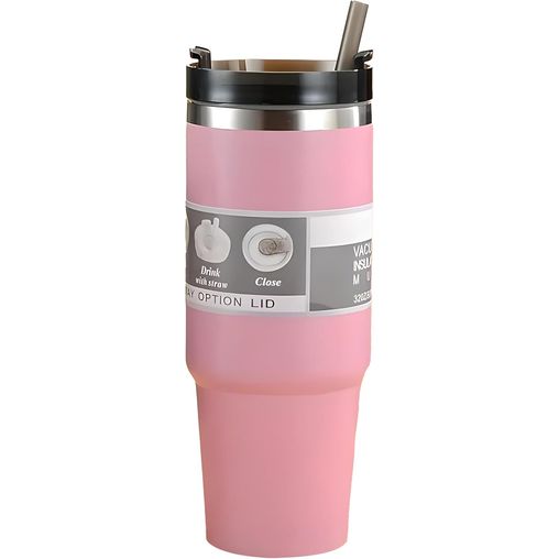600ml Vacuum Insulated Cup With Leak-Proof Lid, 3-Way Lid Option, Double Wall 18/8 Stainless Steel For Hot & Cold Drinks, 6 Hours Hot / 12 Hours Cold, Bpa-Free, Colour Pink