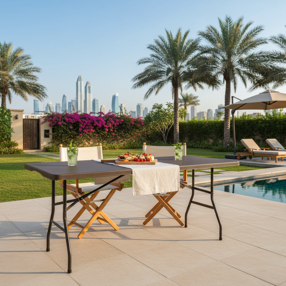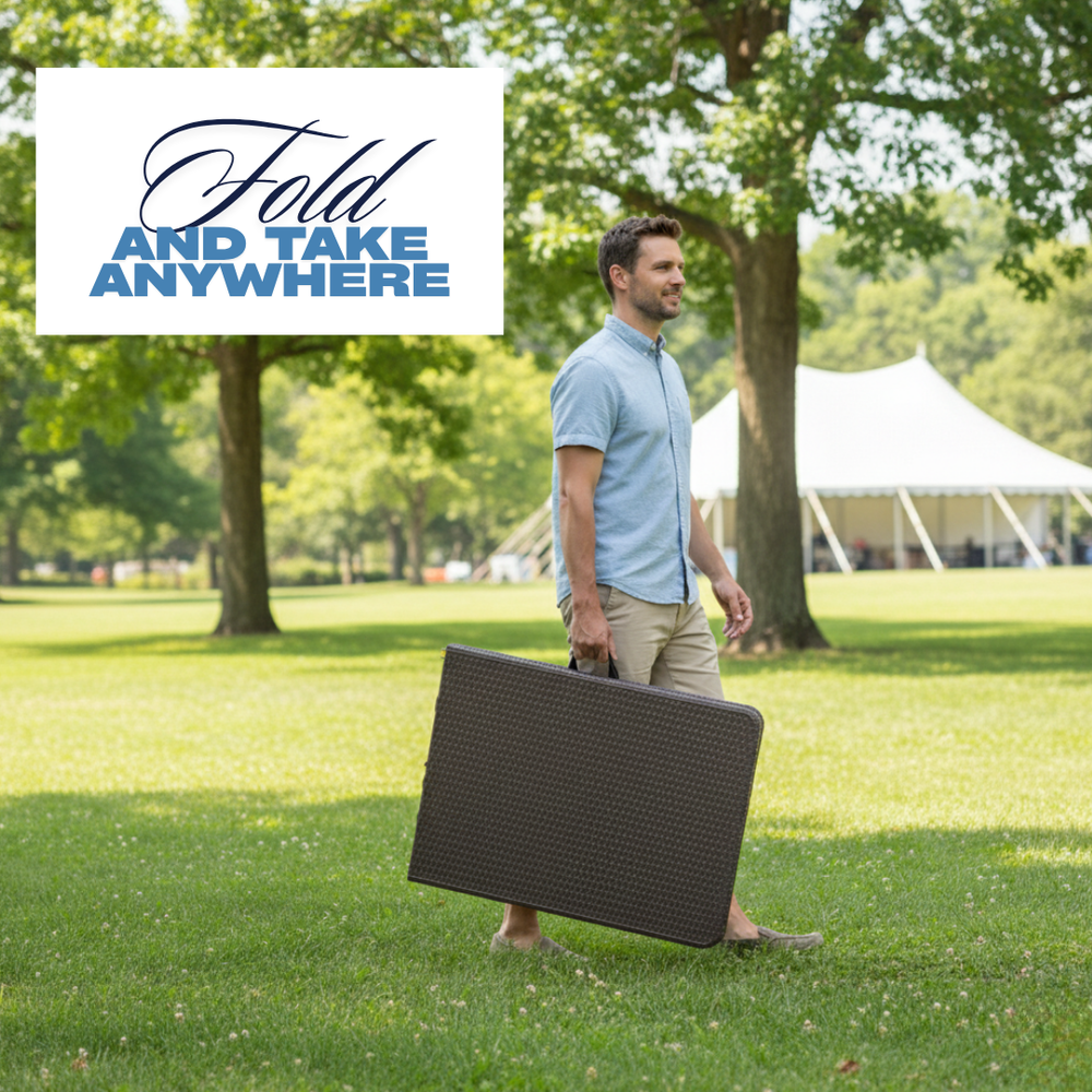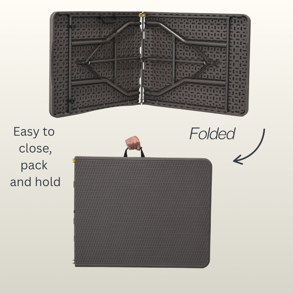 Elegant 6FT rectangular folding table with a rattan texture finish, combining aesthetic appeal and durable performance
