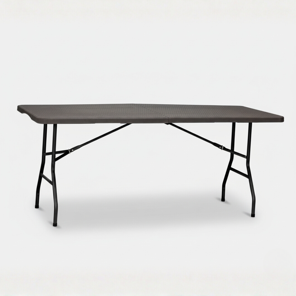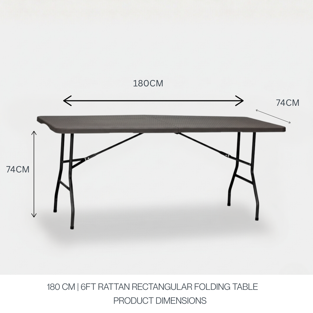 6FT Rattan Rectangular Folding Table (Black) – 180×74×74 cm