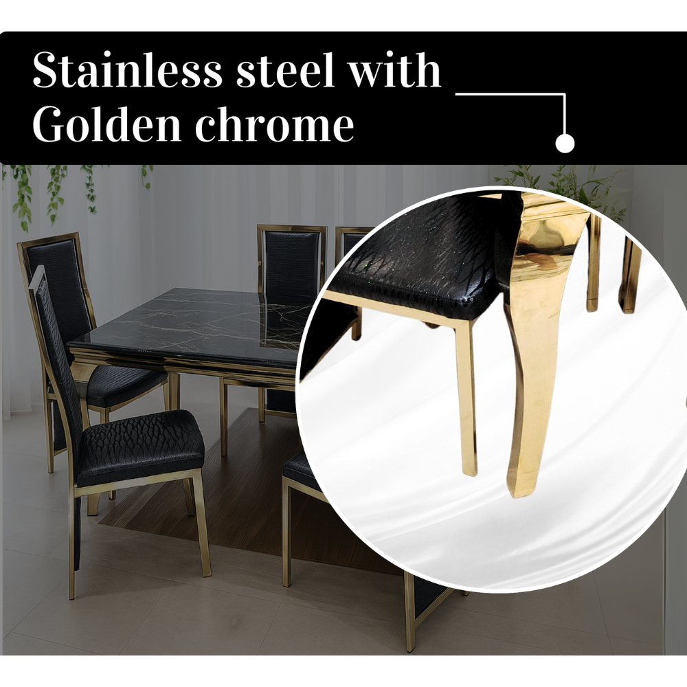 luxury dining table - sintered stone has formed a better decorative effect due to the coherence, color and touch of its texture. Combining the iron legs and the sintered stone desktop into a luxurious table, its unique texture and impeccable quality have achieved a marvelous beauty. The irregular texture tabletop can bring a lively flowing beauty to the space, making the whole home space look more bright.