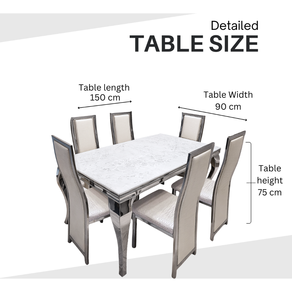 Dining set dimension: table size length 150 x width 90 x height 75 cm