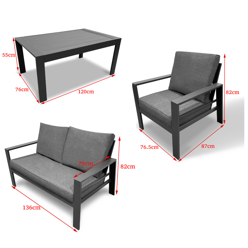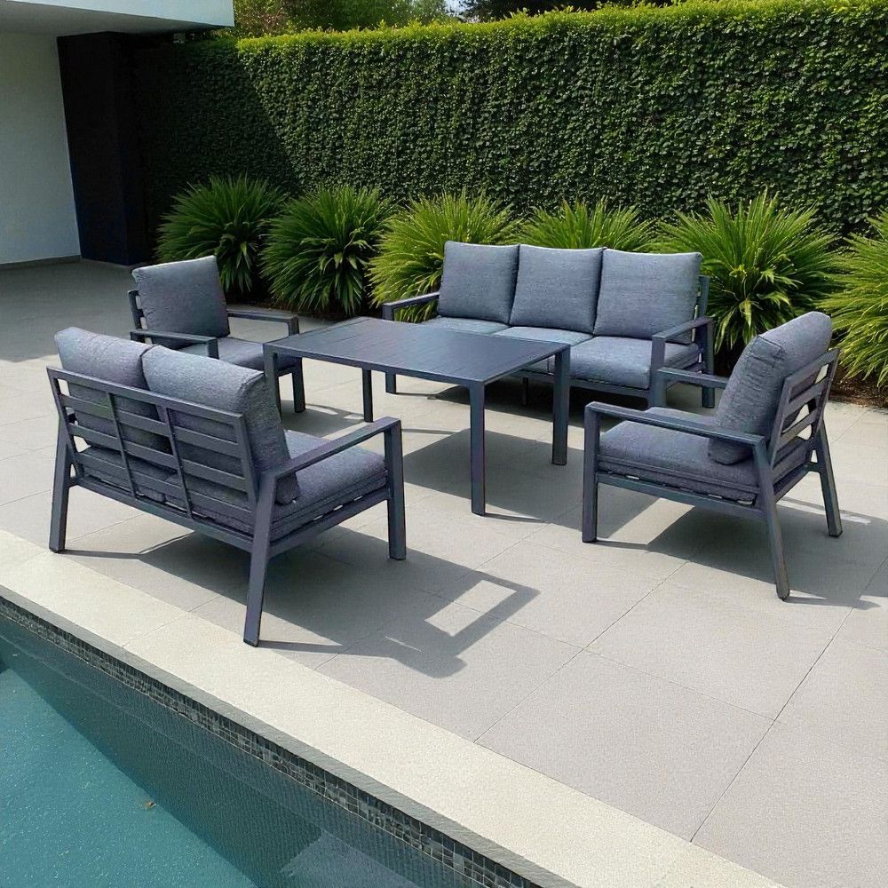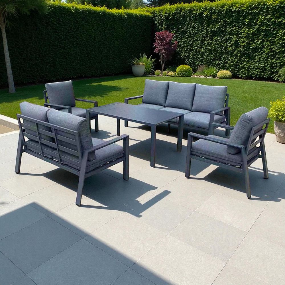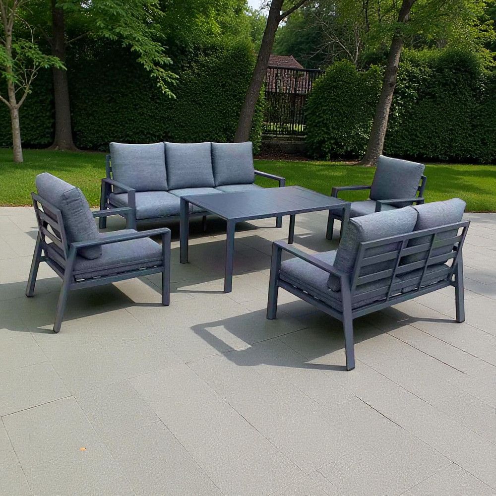 7-Seater Dark Grey Modern Aluminium Outdoor Sofa Set – Elegant, Durable & Comfortable