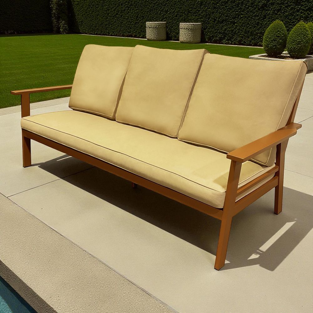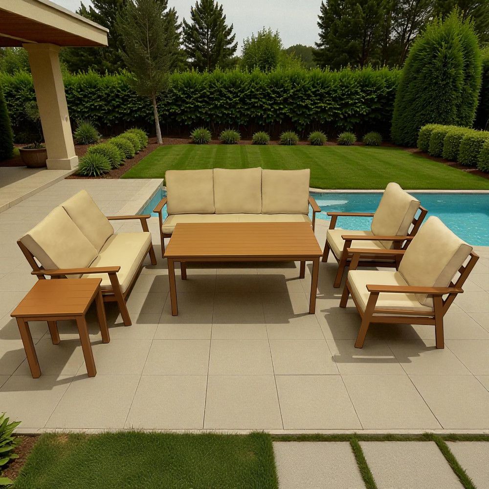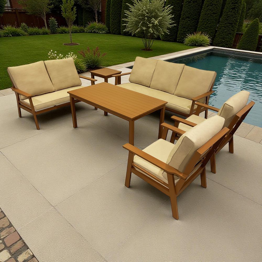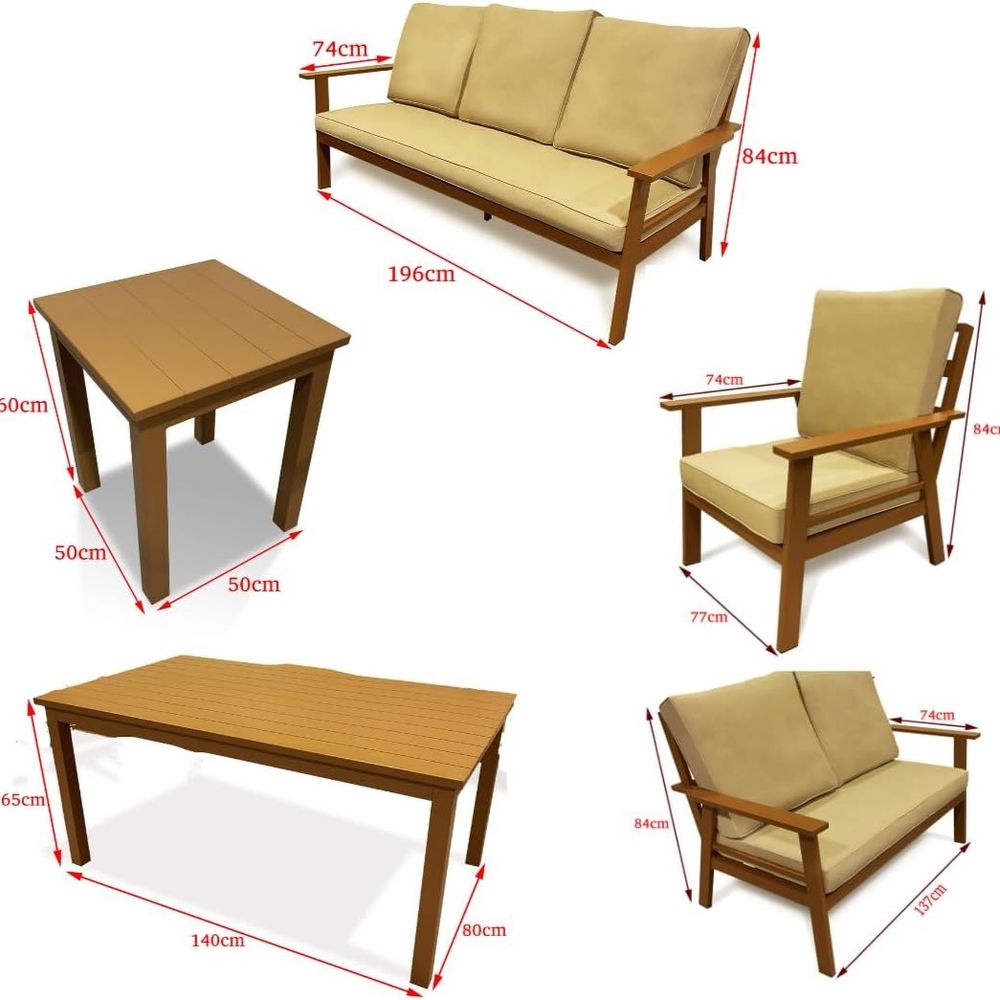 7-Seater Wooden-Effect Aluminium Outdoor Sofa Set – Premium Garden Lounge Collection