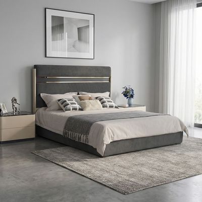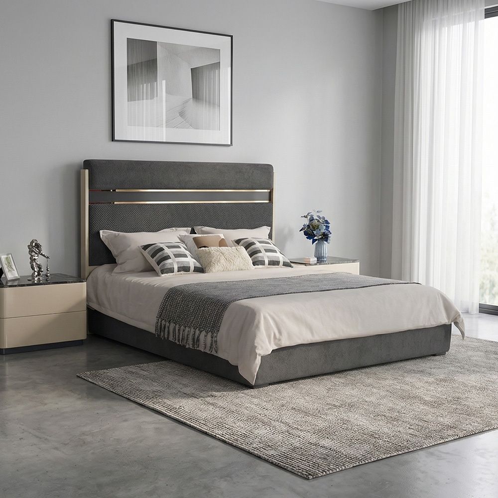 Hanson 180X200 Upholstered King Bed-D.Grey/Khaki