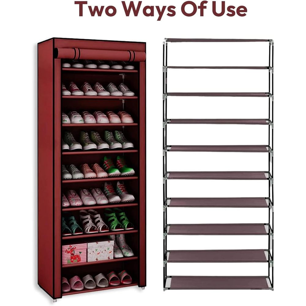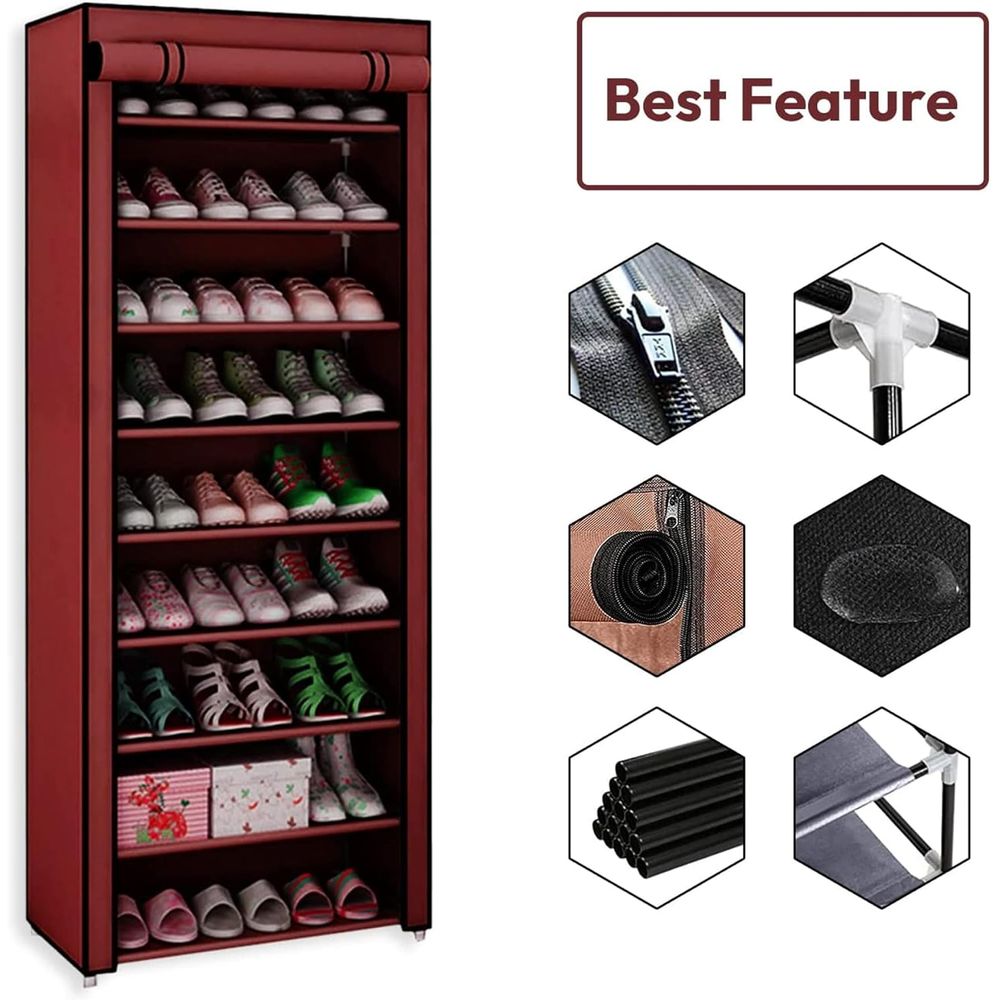 9-Tier Shoe Rack Canvas Shoe Storage Cabinet for 45 Pairs Shoes, Shoe Rack Standing for Living Room, Hallway, Shoe Organiser with Dustproof Cover, Dustproof