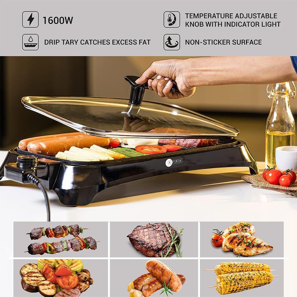 Afra Electric Barbeque Grill, 1600W, Indoor And Outdoor, Thermostat Control, Overheat Protection, Portable, Smoke-Free, Af-1600Bqbk, 2 Years Warranty.