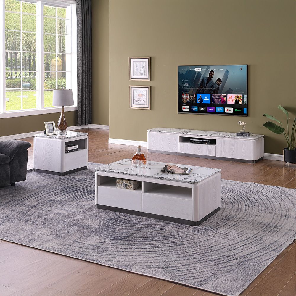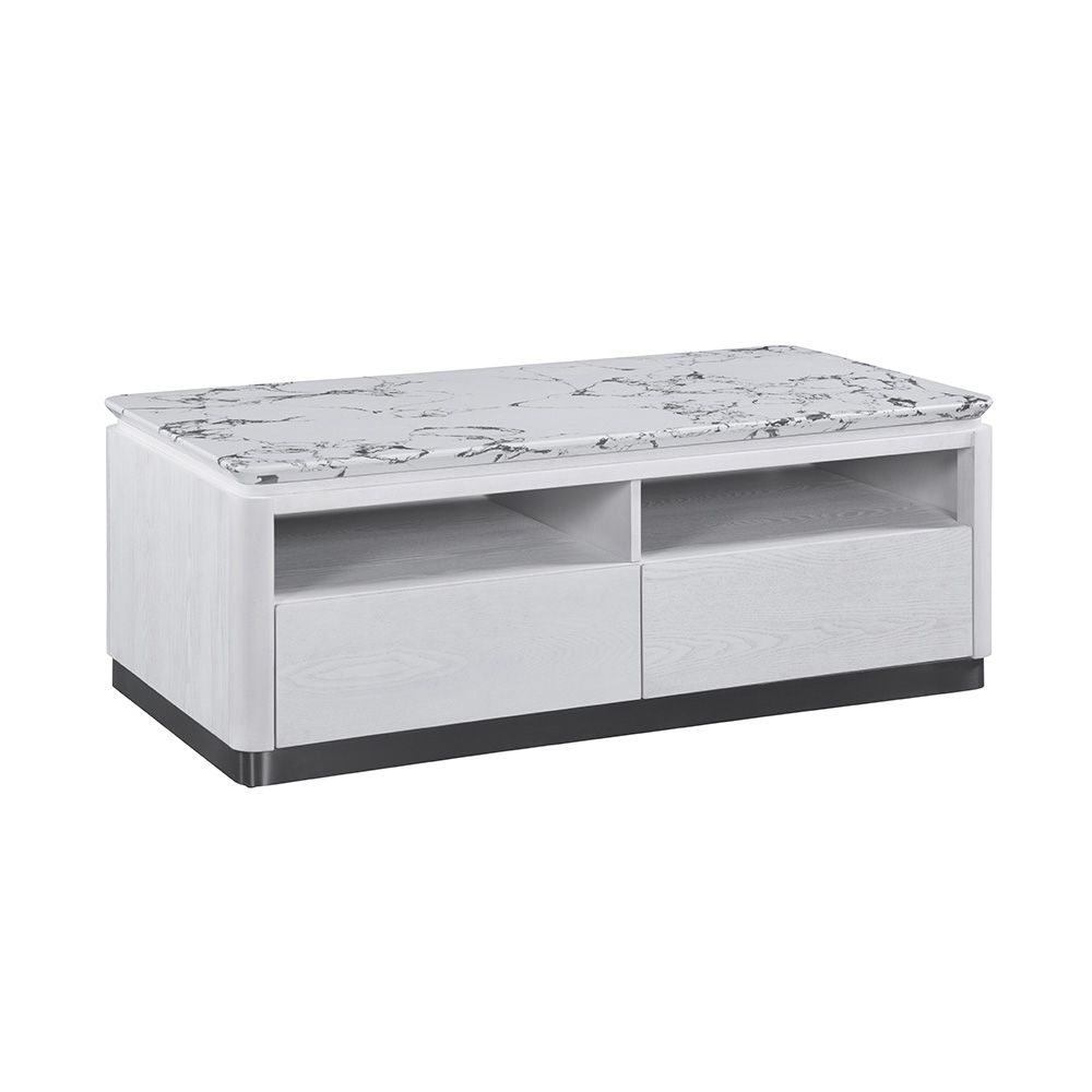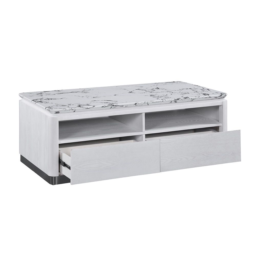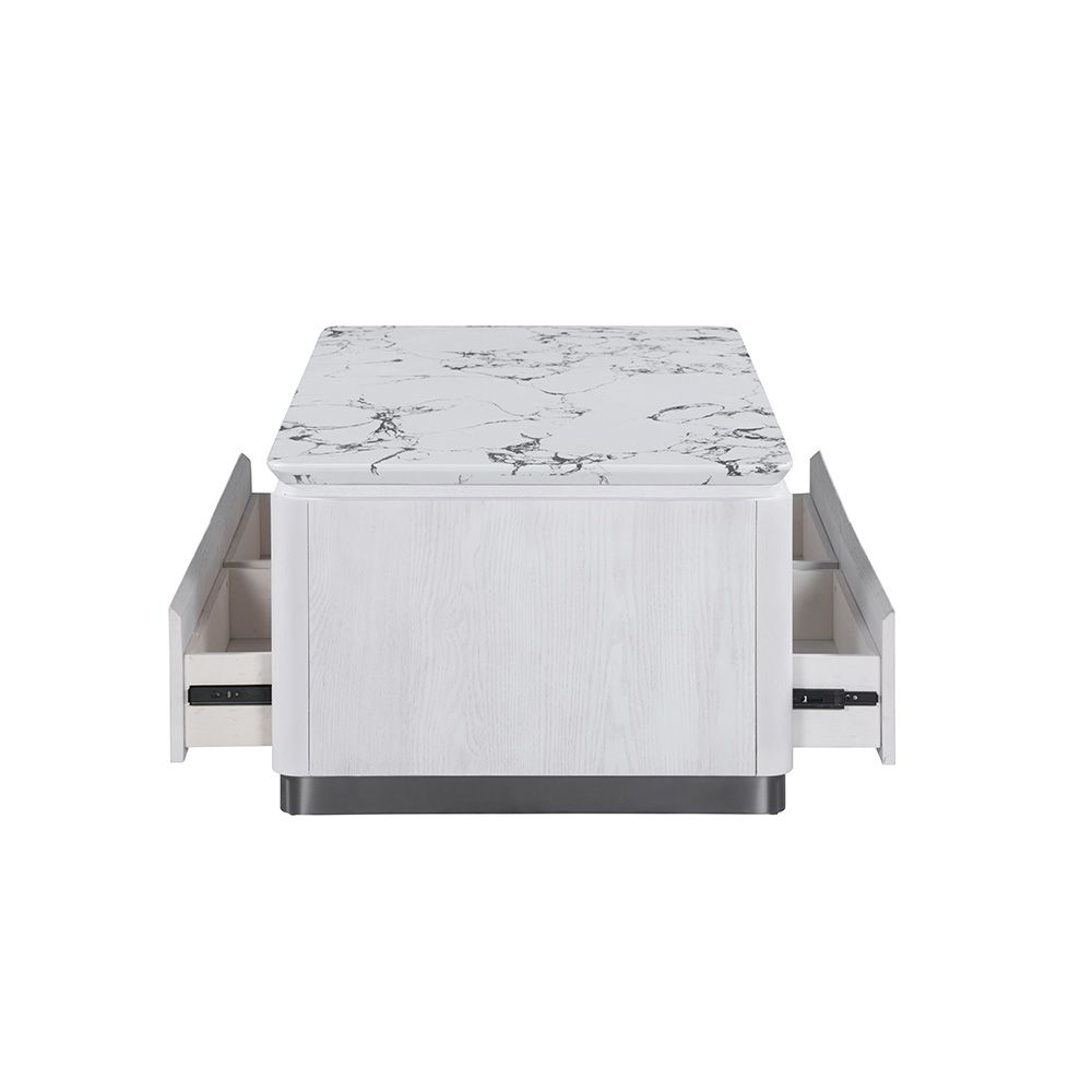 Akira Stone Top Coffee Table With 4 Drawers-White/Grey