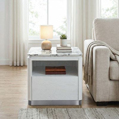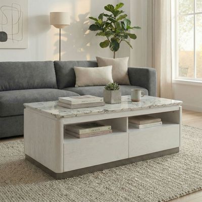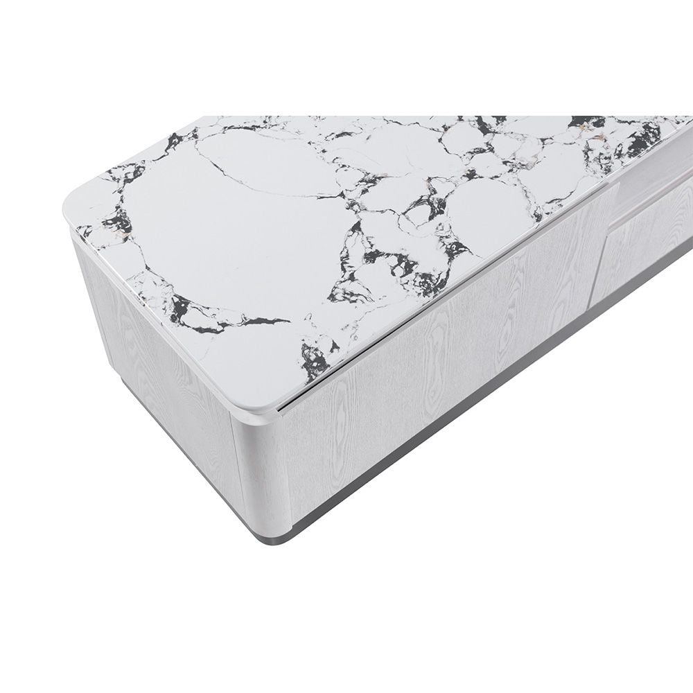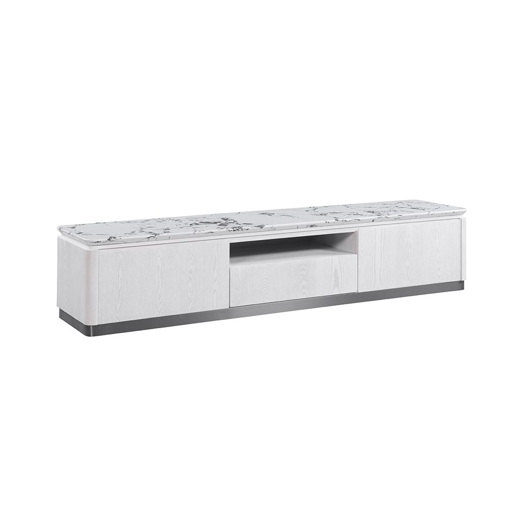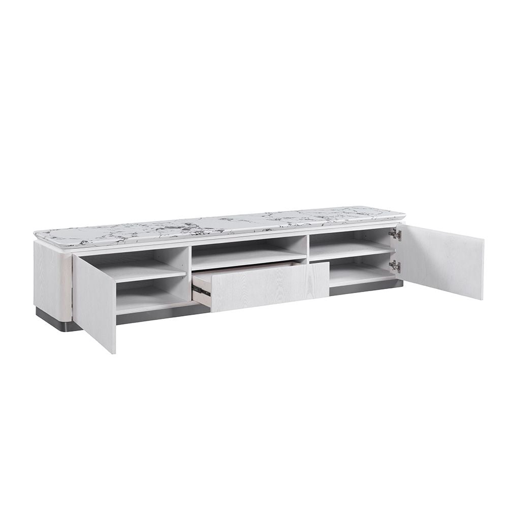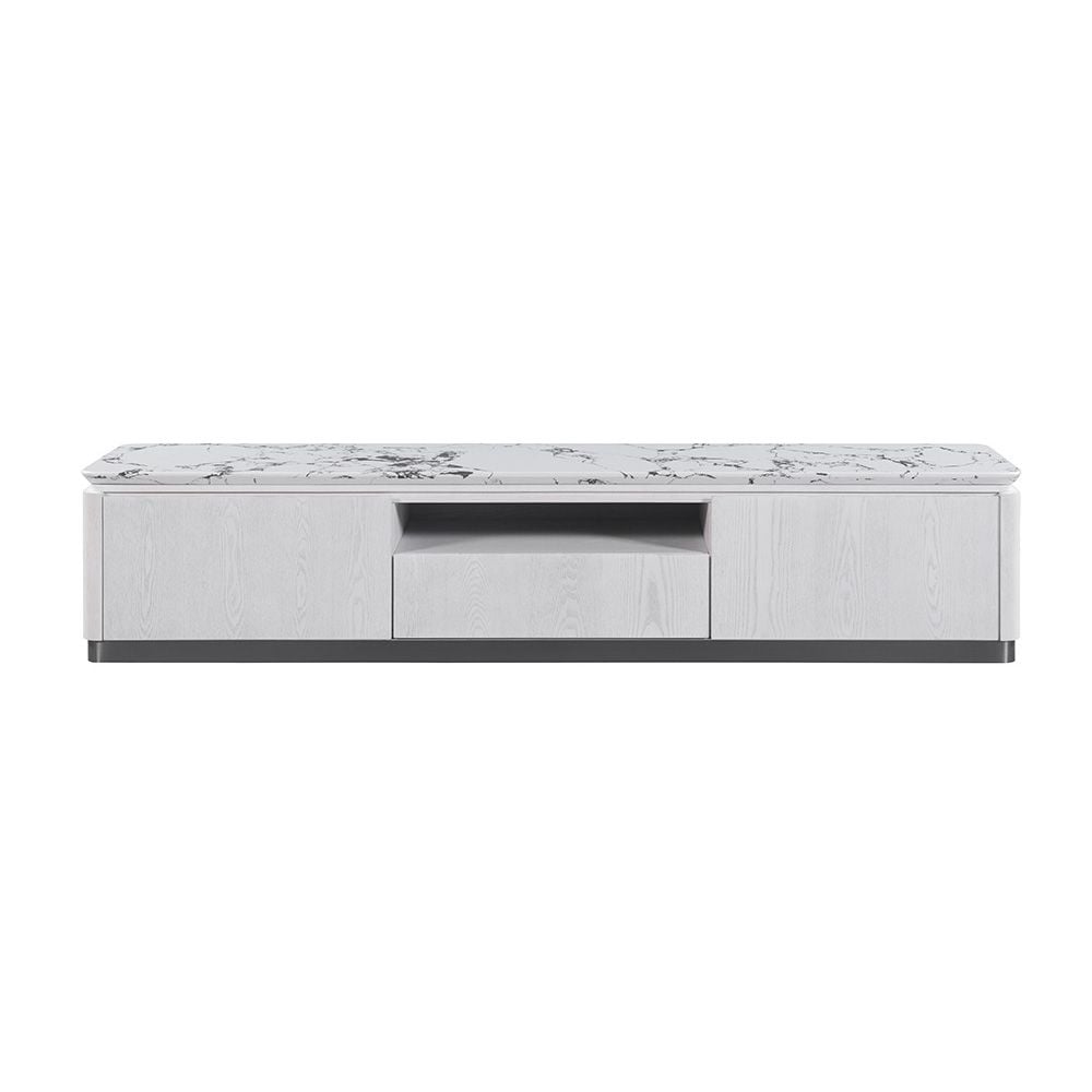 Akira Stone Top Tv Unit With 2Doors And 1Drawer Up To 80 Inches -White/Grey