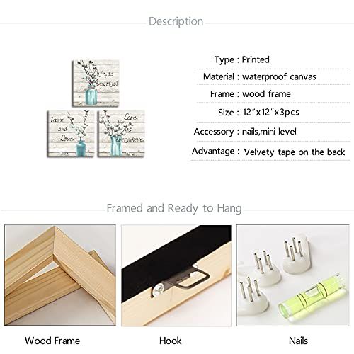 The product ALAYRA 3 Piece Farm Canvas Wall Art White Cotton Flower in Teal Vase Painting Art Prints Vintage Quote with Wood Background Picture Poster for Farmhouse Bedroom Decor Ready to Hang images have props used for illustrative purposes. Product Color may vary slightly due to photographic lighting or your screen settings.