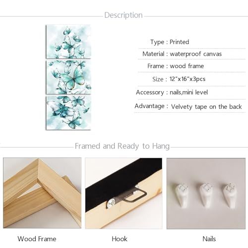 The product ALAYRA Butterfly Canvas Wall Art Decor Modern Butterflies Painting Picture Print Modern Bedroom Bathroom Decorations (Green) images have props used for illustrative purposes. Product Color may vary slightly due to photographic lighting or your screen settings.