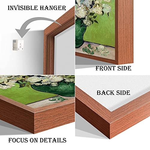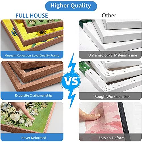 The product ALAYRA FULL HOUSE Framed Canvas Wall Art of Van Gogh Oil Paintings - Roses & Sunflowers & Irises - Impressionism Aesthetic Canvas Prints Wall Paintings for Living Room Bedroom Office Home, 3 Panels images have props used for illustrative purposes. Product Color may vary slightly due to photographic lighting or your screen settings.