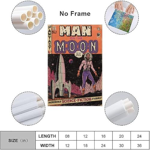 The product ALAYRA Kid Cudi Man On The Moon Music Poster - 16x24inch Canvas Wall Art for Bedroom Decor images have props used for illustrative purposes. Product Color may vary slightly due to photographic lighting or your screen settings.