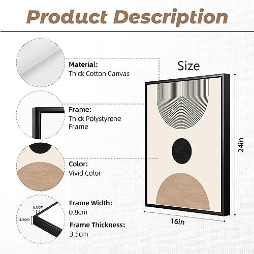 The product ALAYRA Mid Century Modern Wall Art Set of 3 Neutral Boho Art Prints Abstract Geometric Wall Art Picture Black Beige Terracotta Minimalist Painting Canvas Artwork for Living Room Bedroom 16x24 Inch FRAMED images have props used for illustrative purposes. Product Color may vary slightly due to photographic lighting or your screen settings.