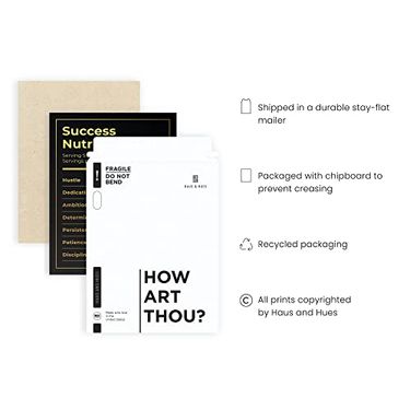 The product ALAYRA Motivational Wall Art Hustle - Work Posters for Office, Business Quotes, Workplace Sayings, Self Motivation for Gym, Success Wall Art (12x16, Unframed) images have props used for illustrative purposes. Product Color may vary slightly due to photographic lighting or your screen settings.