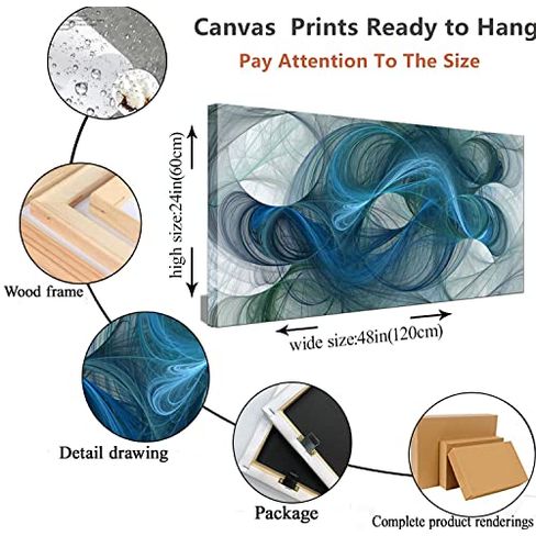 The product ALAYRA Riveda Large abstract blue gray line decorative painting wall art prints living room decoration office bedroom canvas poster home decor 24"*48" inches images have props used for illustrative purposes. Product Color may vary slightly due to photographic lighting or your screen settings.