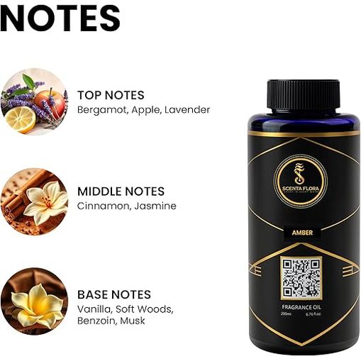 The product Amber Fragrance Oil for Scent Diffusers Aromatherapy 200ml | IFRA Certified | A Blend of Bergamot, Jasmine and Musk | Ideal for Home, Office & Commercial Spaces | Relaxing and Refreshing images have props used for illustrative purposes. Product Color may vary slightly due to photographic lighting or your screen settings.