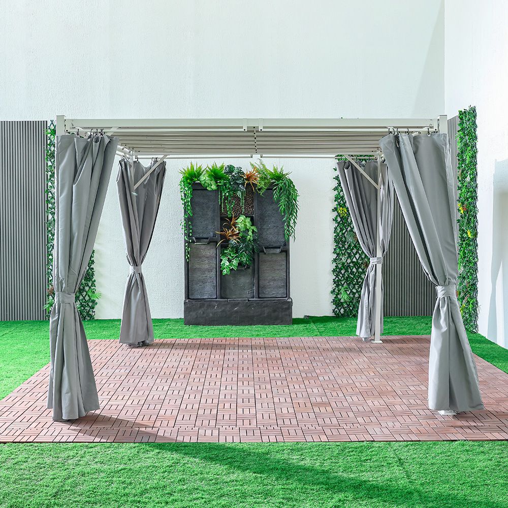 The elegant combination of white and grey allows the pergola to blend well with any décor and brings brightness to your outdoor zone.