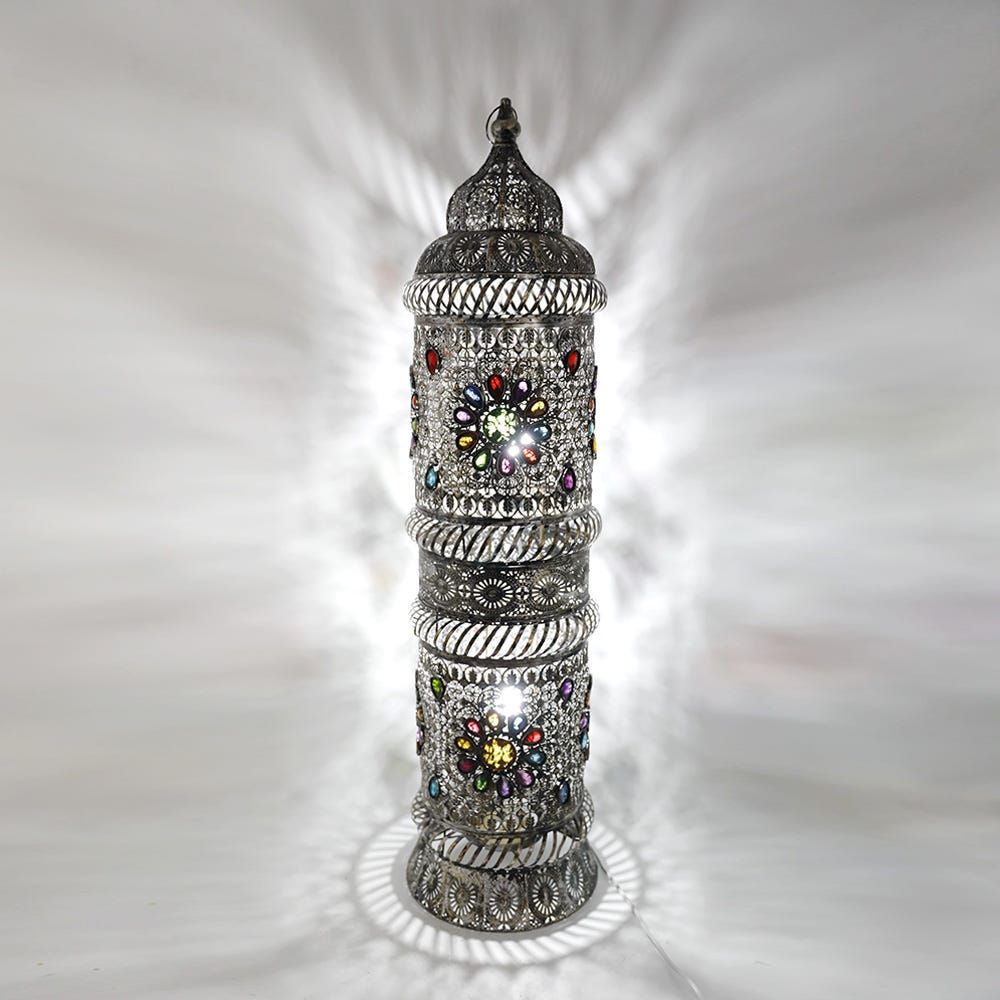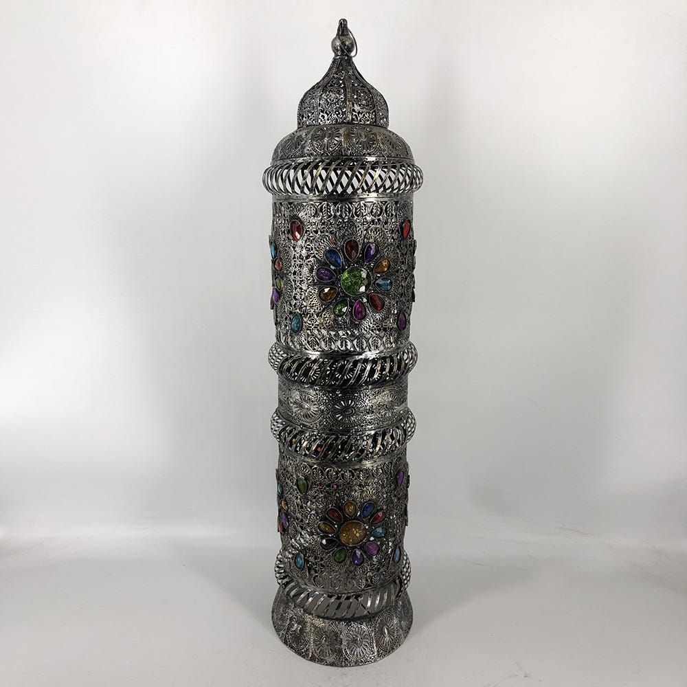 Antique Silver Metal Lantern - 26X26X108Cm - Fm00