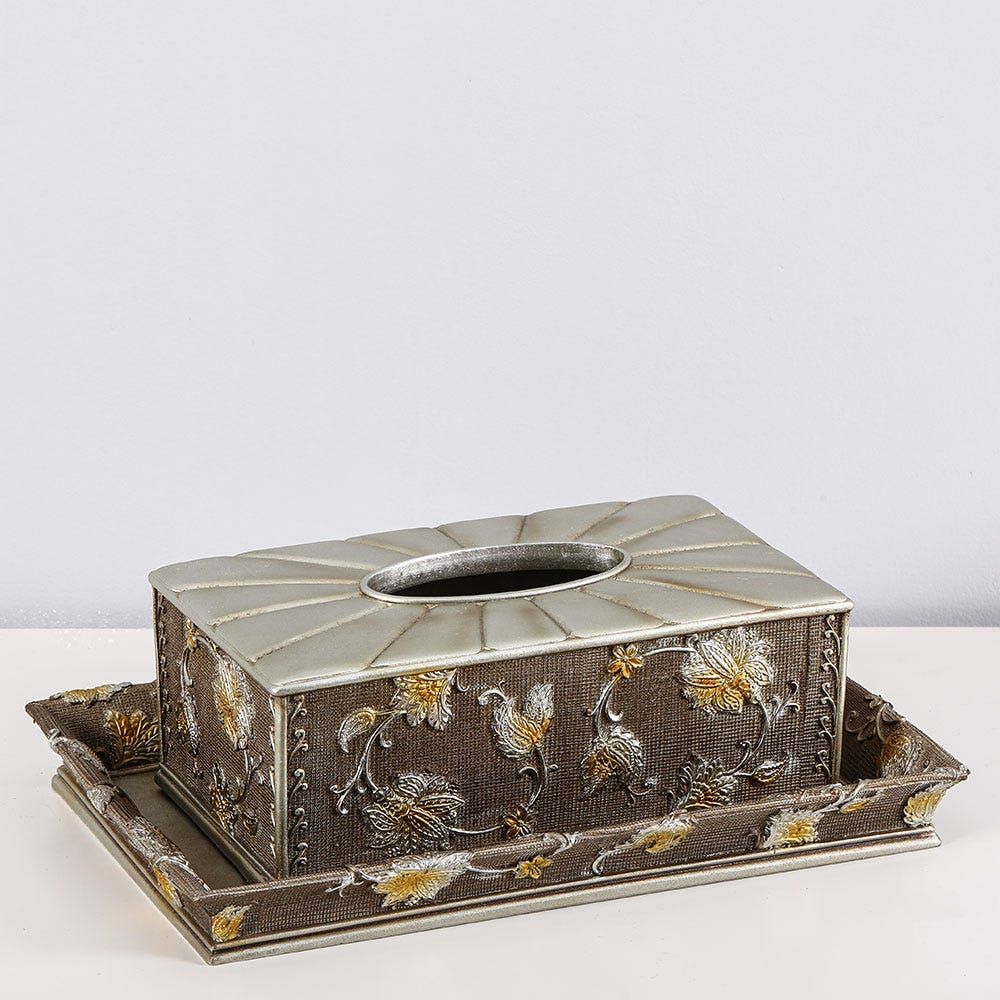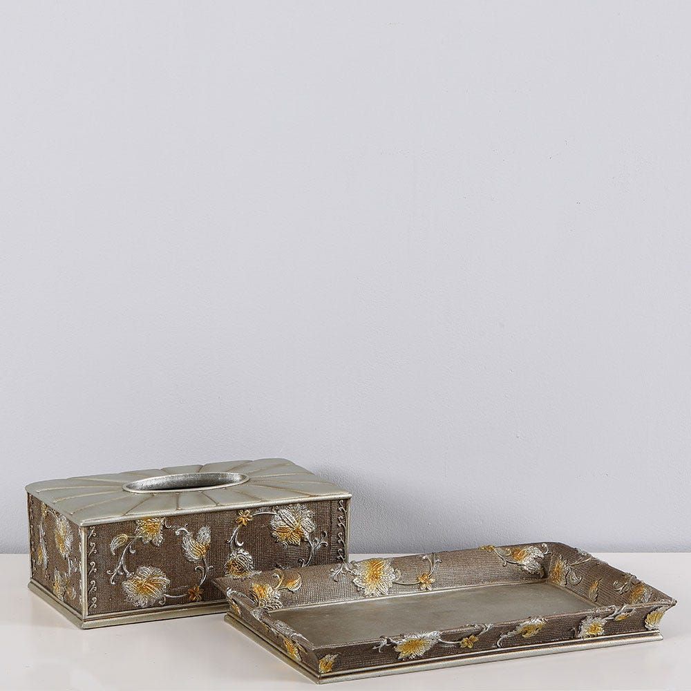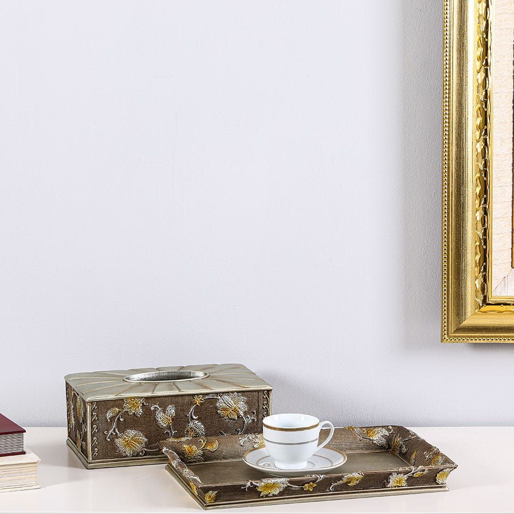Ariana Gift Set Tissue Box & Serving Tray Gold 11X6.4X4.1 & 14.8X9.8X1.6inch