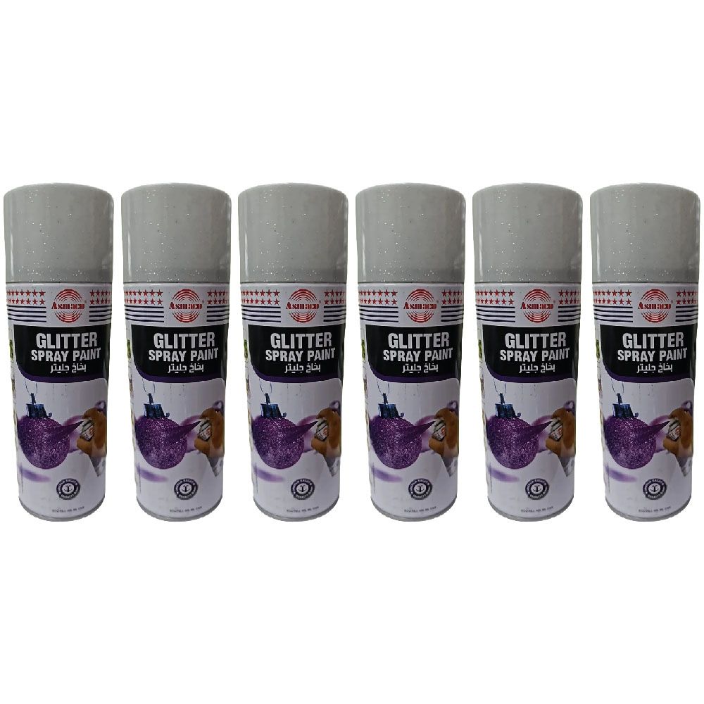 Asmaco Glitter Spray Paint - White - 400 Ml - Set of 06