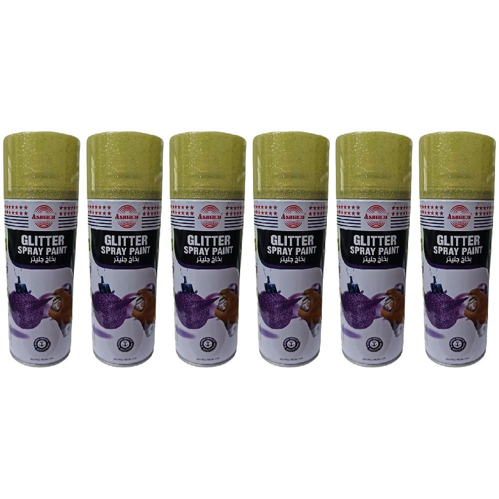 Asmaco Glitter Spray Paint - Yellow - 400 Ml - Set of 06
