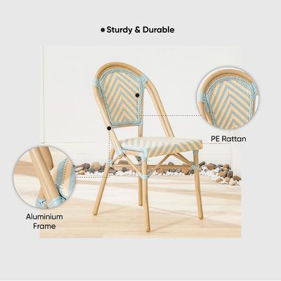 Crafted from high-quality aluminum and PE wicker, the chair is sturdy and durable.