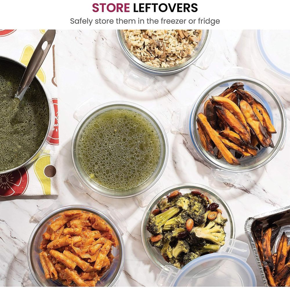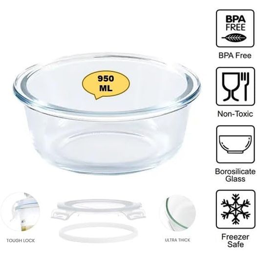 AtrauX 4-Pcs Round Glass Food Containers Lunch Box-950ml