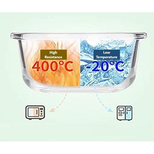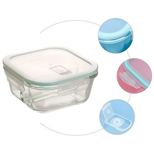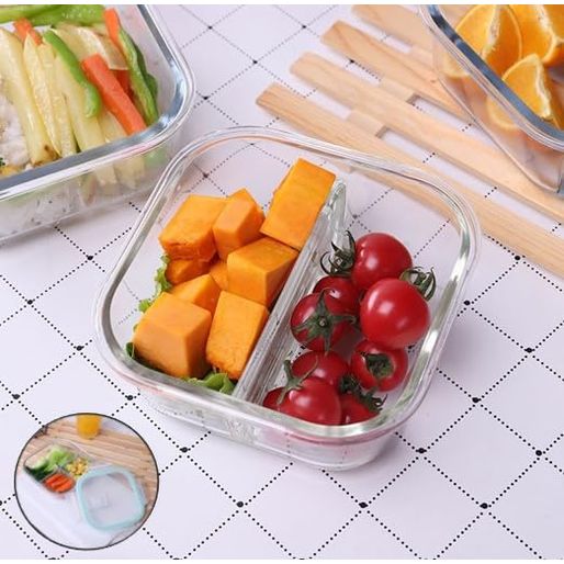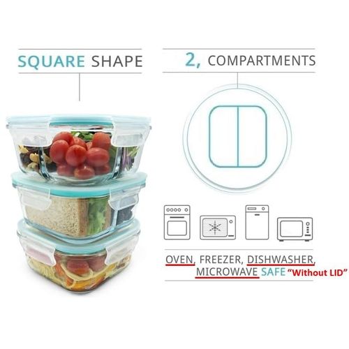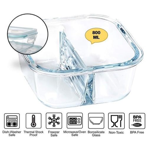 AtrauX 4-Pcs Square Glass Containers Lunch Box 2-Compartments-800ml