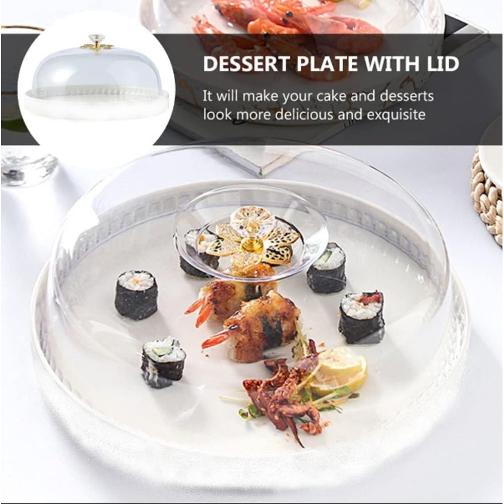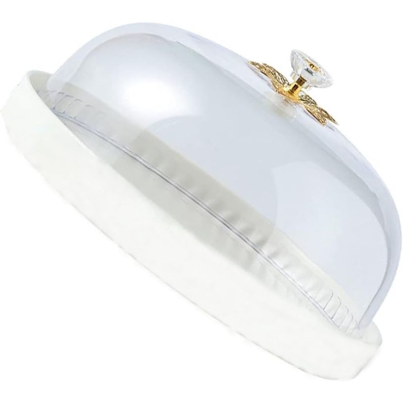 AtrauX Dessert Rotating Serving Plate Cake Stand with Lid, Ceramic Tray (33 cm)
