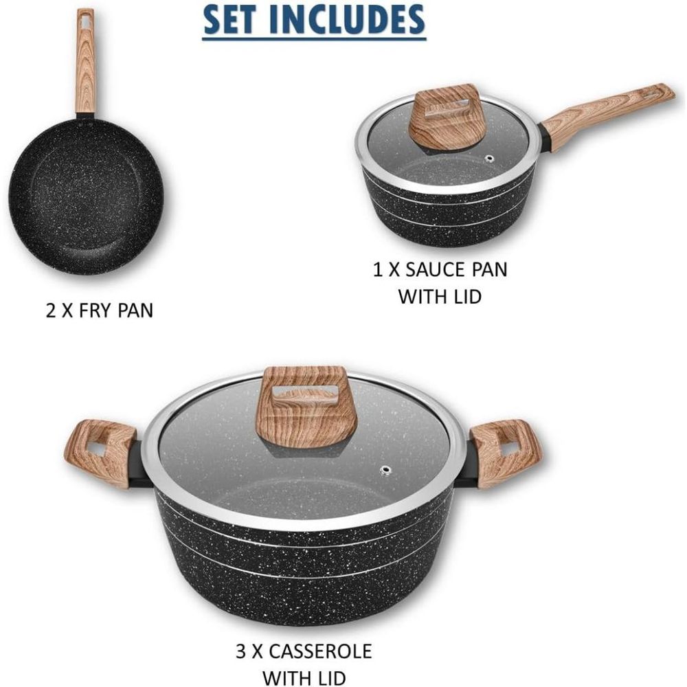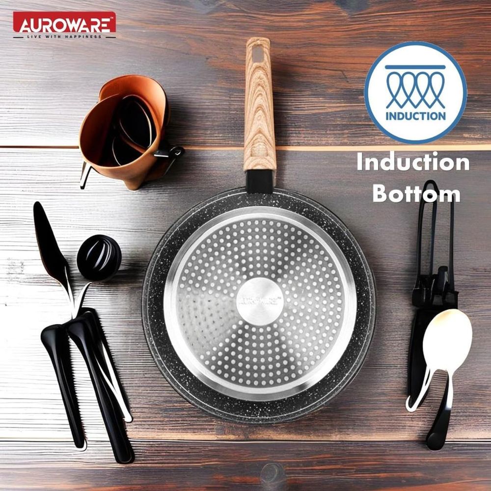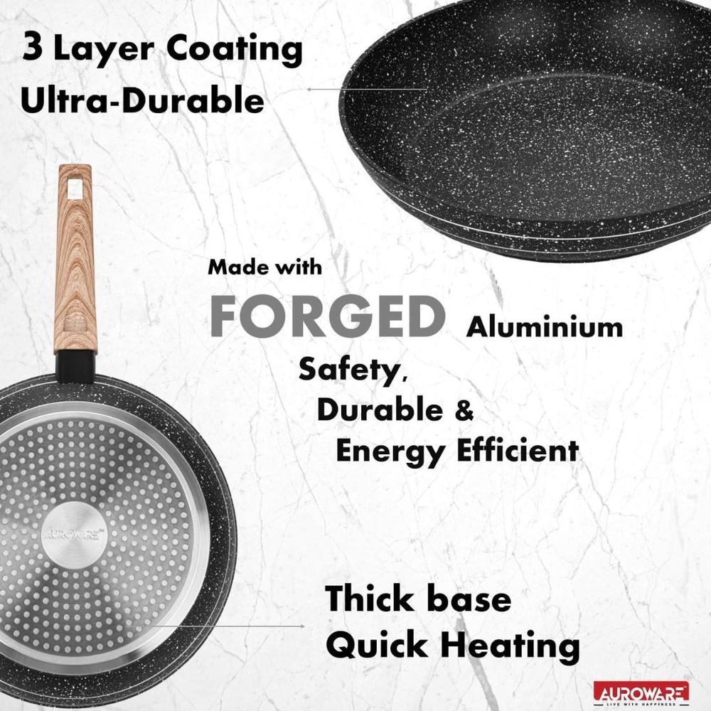 Auroware 10 Piece Non Stick Cookware Set Forged Aluminium, Sauce Pan with Lid, Frying pan, Casserole with Lid, Dishwasher Safe, PFOA Free Strong and Durable frypan