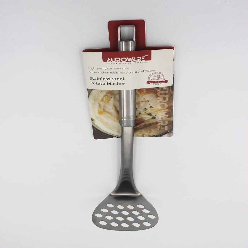 Auroware Stainless Steel Kitchen Utensil Set 5-Piece for Home cooking Potato smasher, Slotted Turner, Spoon, Spaghetti Server, Soup Ladle