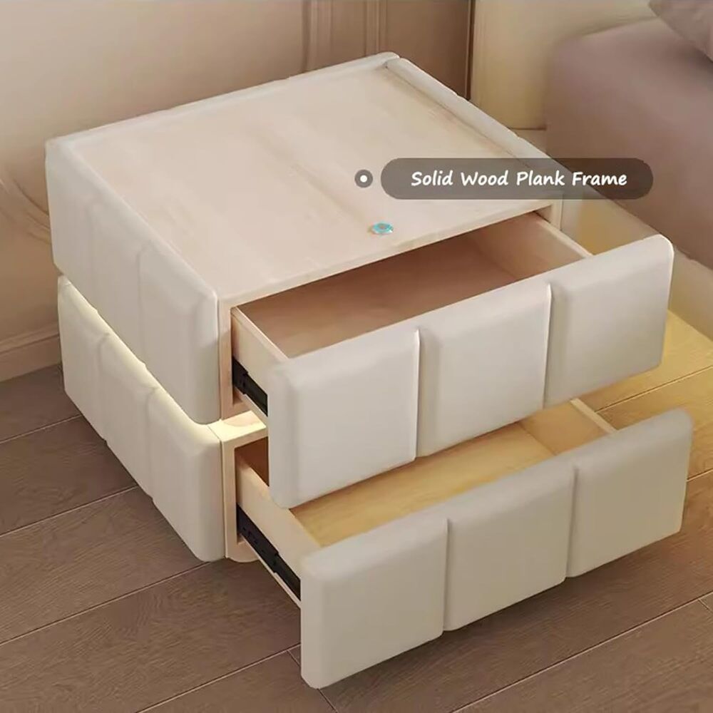 【Material】 The bedside table is constructed from solid wood, which provides durability and sturdiness. It is covered with faux leather, adding a touch of elegance and sophistication to its appearance.