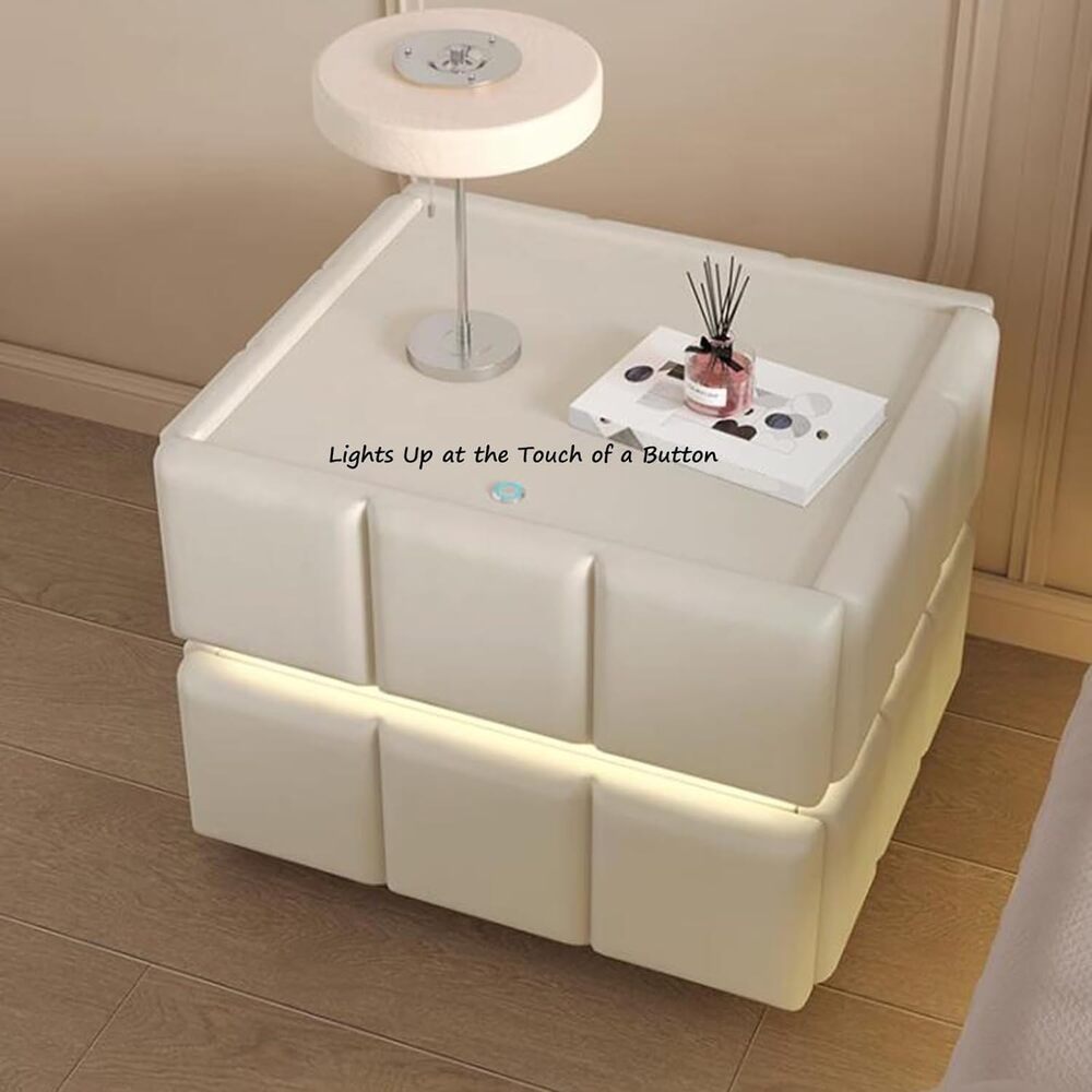 【Smart Sensor LED Light】 This bedside table comes with beautiful LED backlight. The smart sensing function is very convenient and practical at night. The light automatically turns on when you approach the bedside table and turns off shortly after you leave.