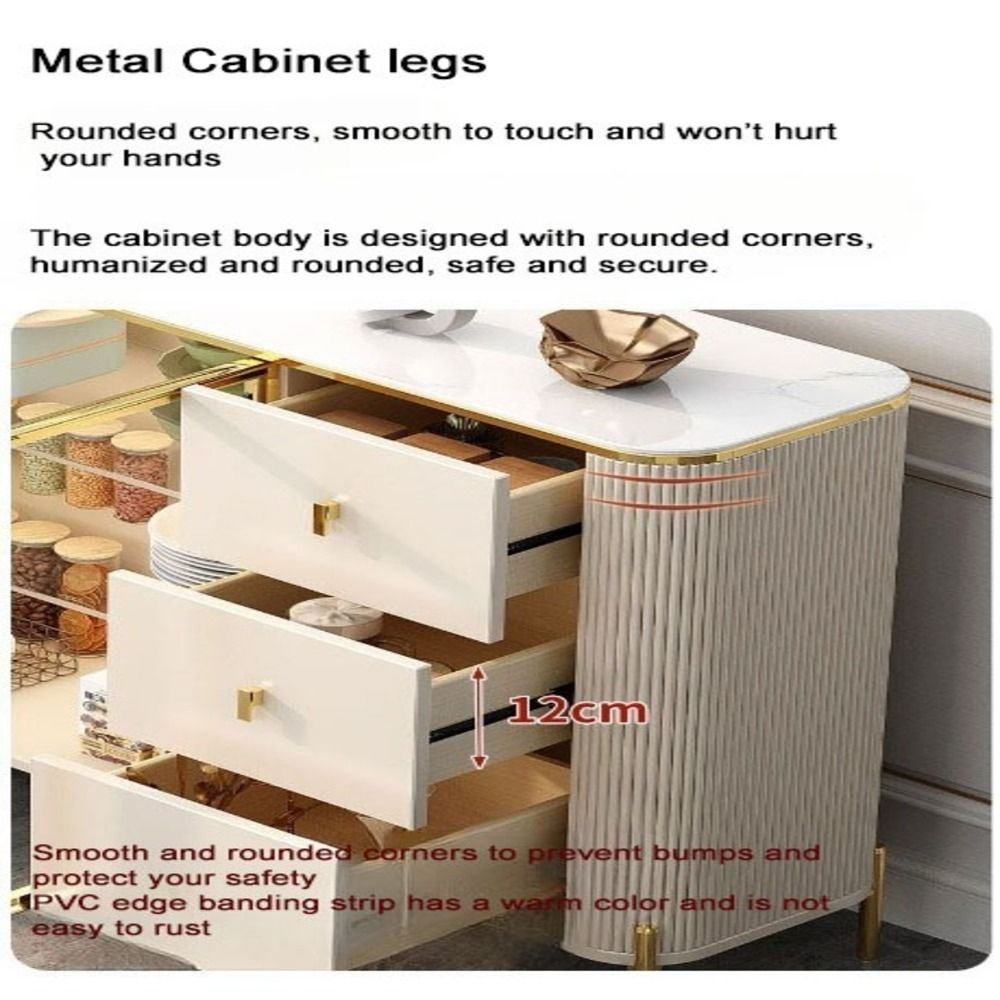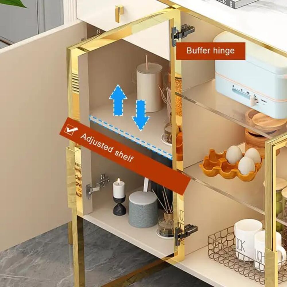 Our stone-top sideboard coffee bar cabinet offers extensive storage options to keep your living space clutter-free.