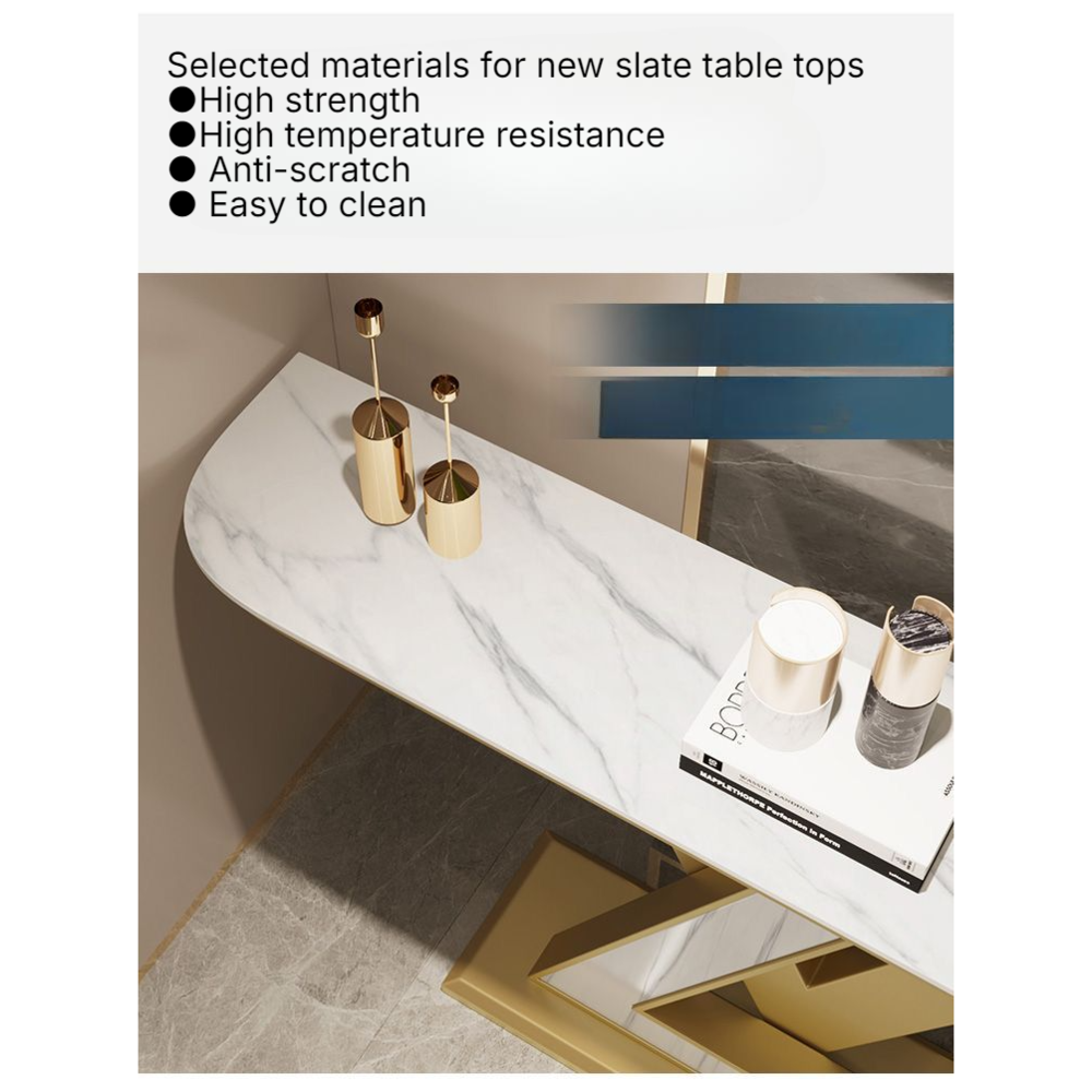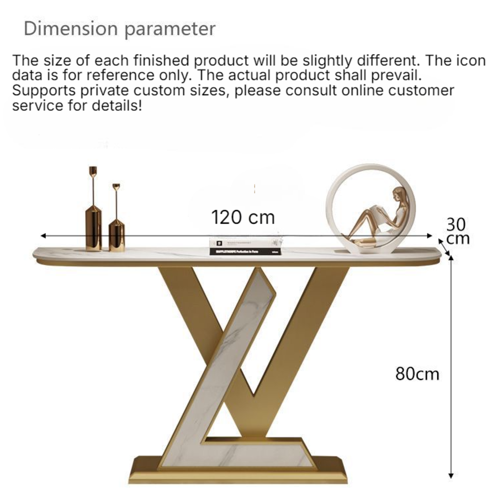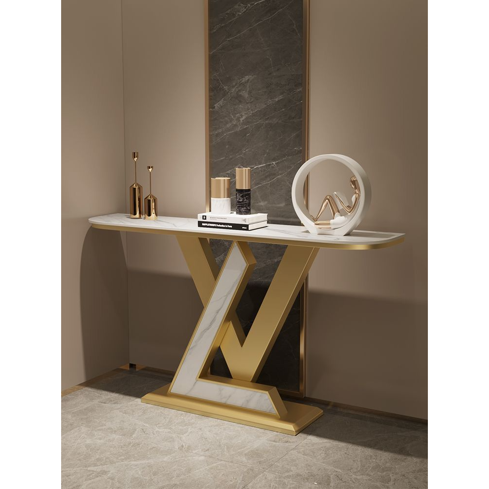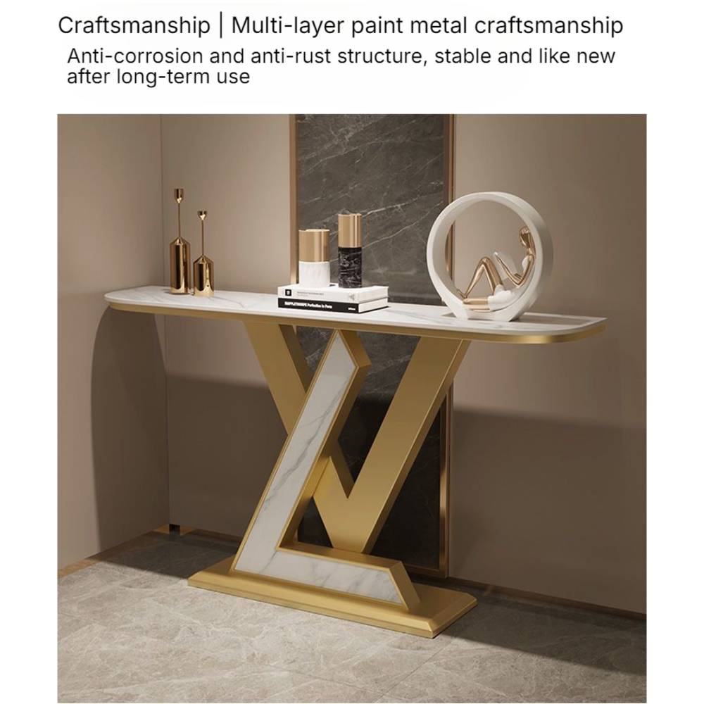Entrway Console Table, LV Shape Console Slate Stone Top Accent Entrance Console Table Gold Metal Base Frame, Hallway Entry way Corridor Decoration Table.