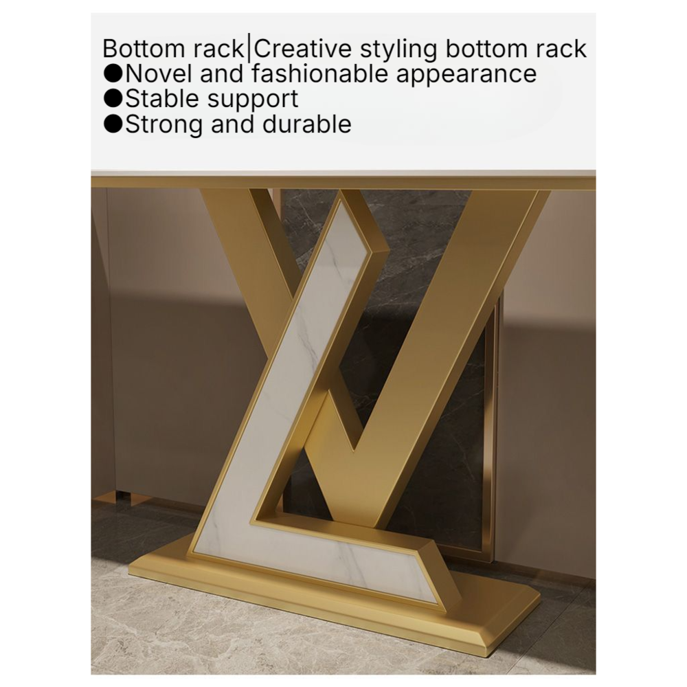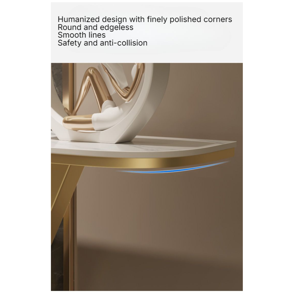 Enhance the elegance of your living space with this modern gold console table. Perfectly suited for your entryway, hallway, or living room, this console table combines functionality with a stylish design. Featuring a sleek white faux marble tabletop and sturdy gold iron metal legs, it is not only a practical surface but also a statement piece that will elevate your home decor.
