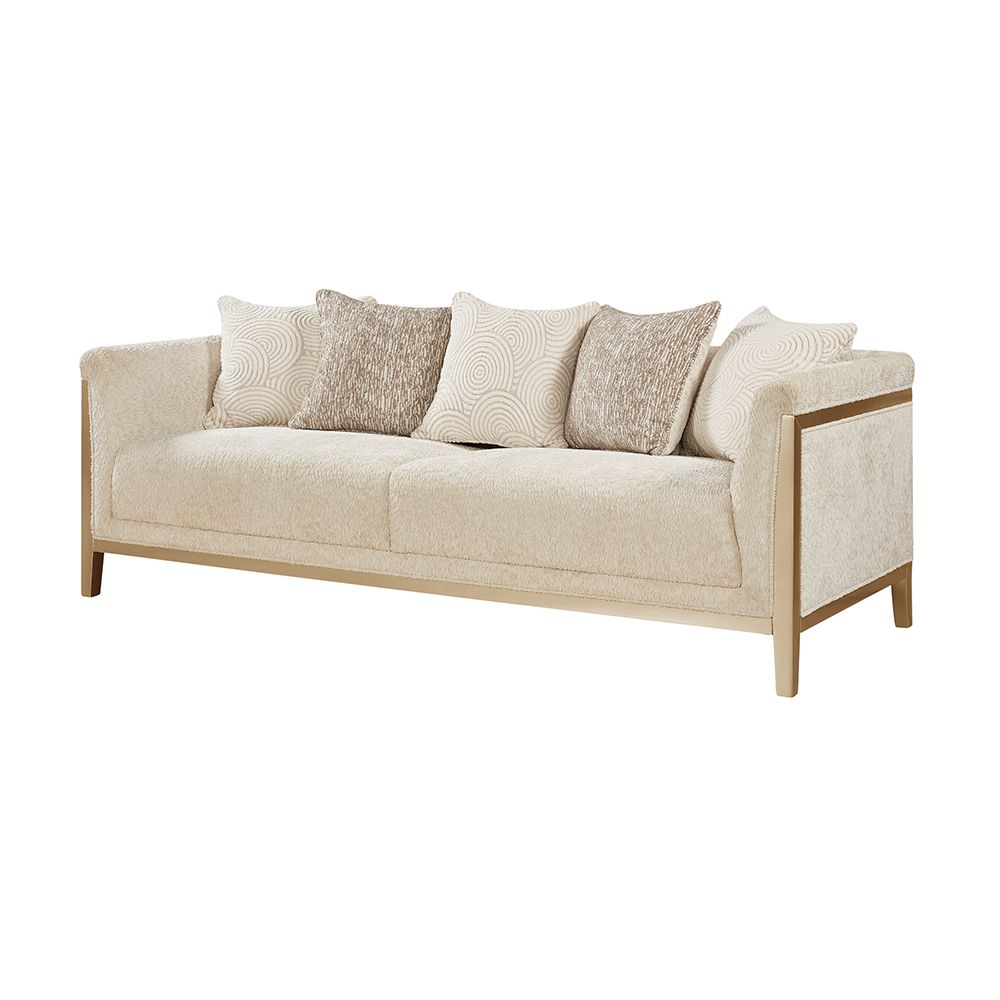 Azalea 3 Seater Fabric Sofa - Beige/Champagne Gold