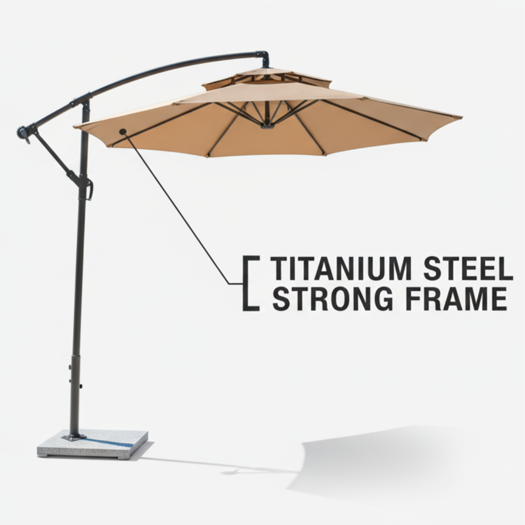 Azure Cantilever Offset Patio Outdoor Umbrella with Rotating Handle Stylish UV-Resistant Canopy (Brown)