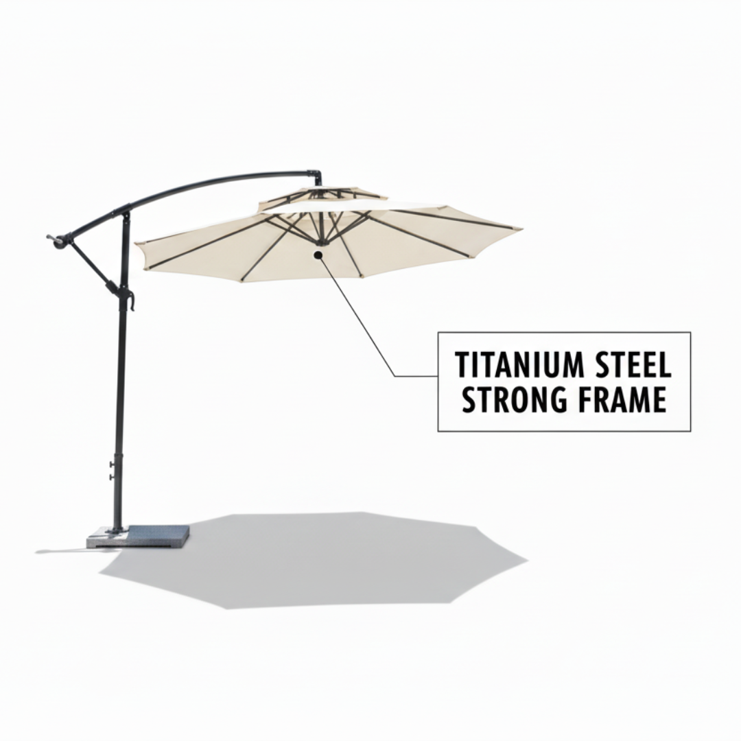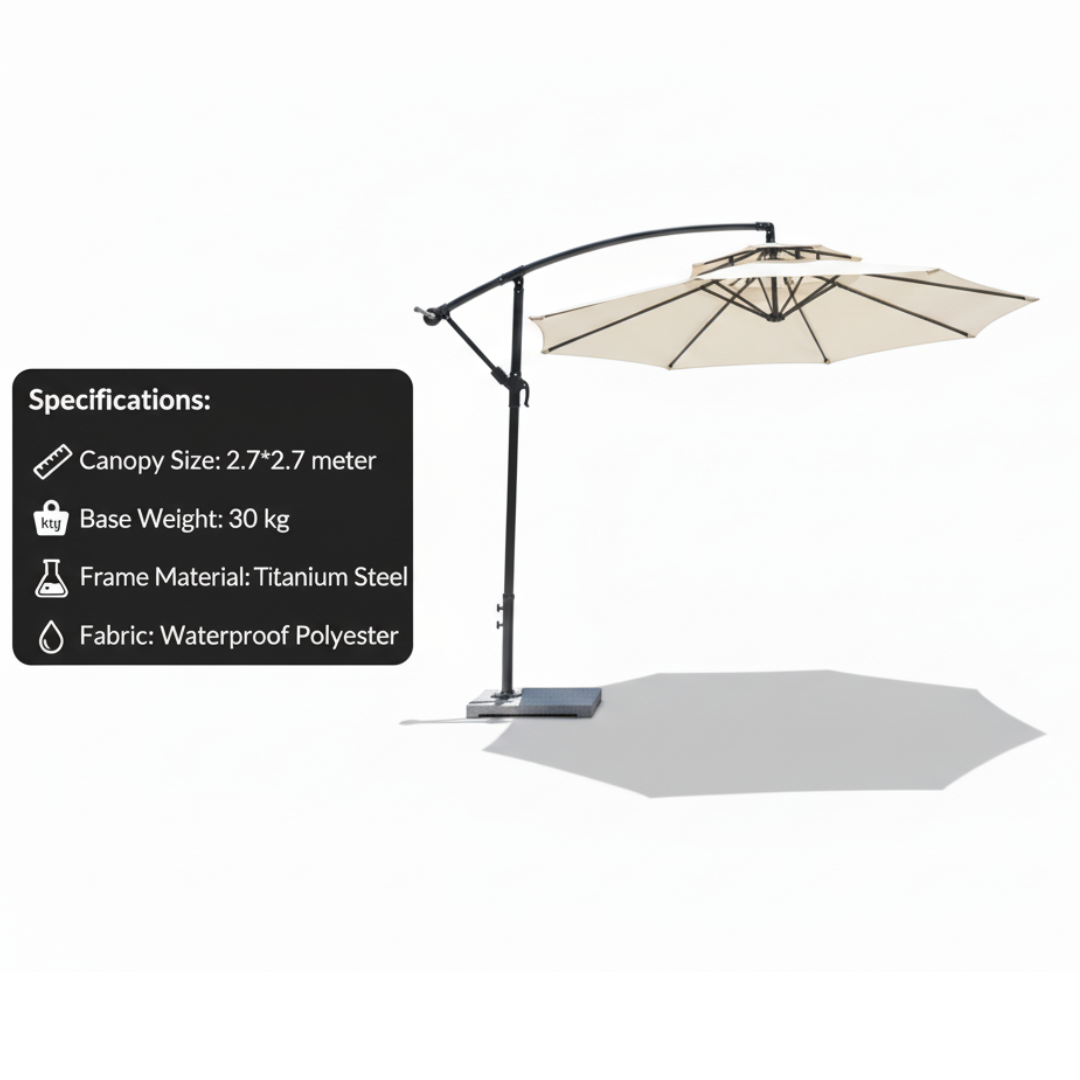 Azure Cantilever Offset Patio Outdoor Umbrella with Rotating Handle Stylish UV-Resistant Canopy (White)