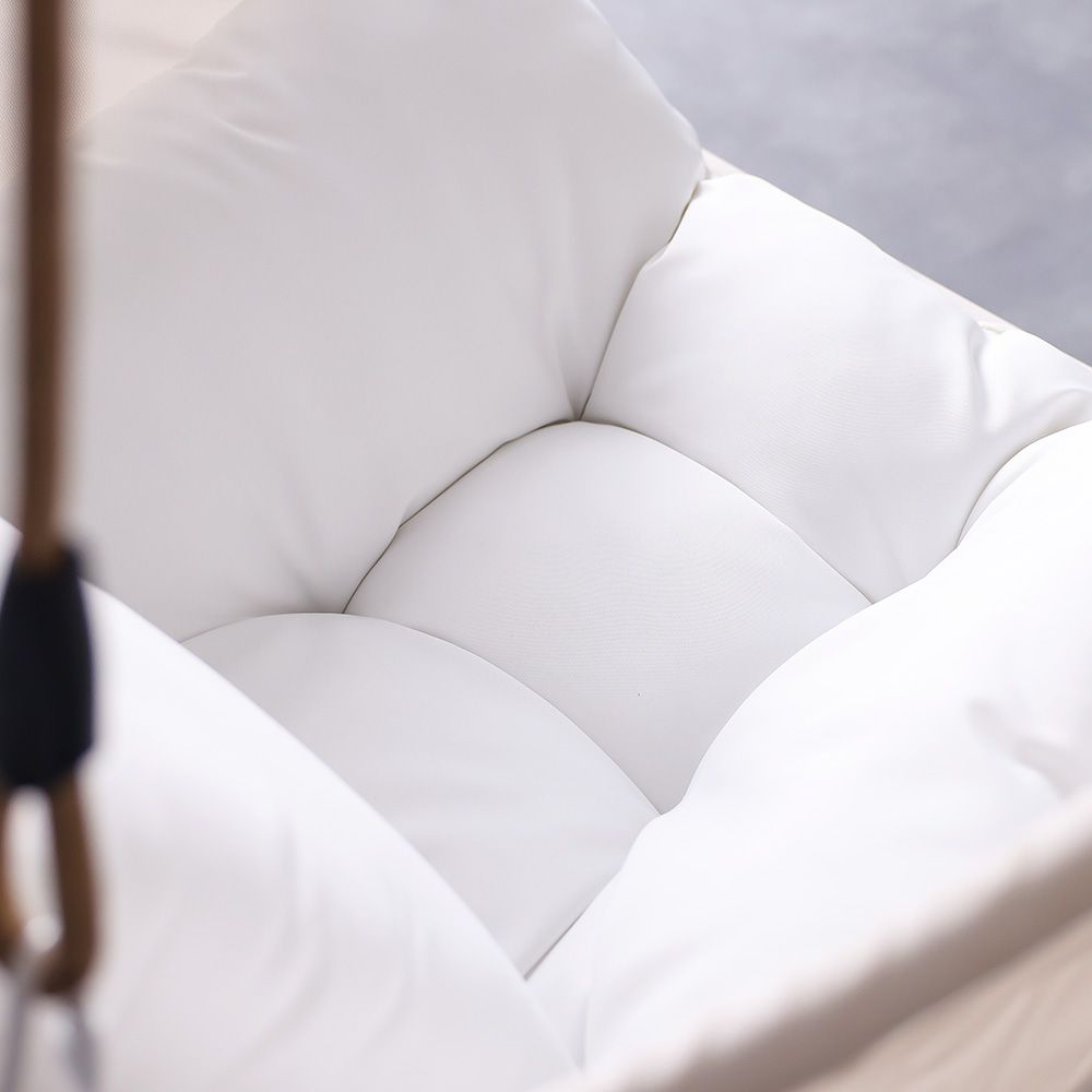 The textilene seat and plush polyester cushion create a cocoon of comfort and softness, while the stable suspension ropes deliver a gentle, soothing sway.