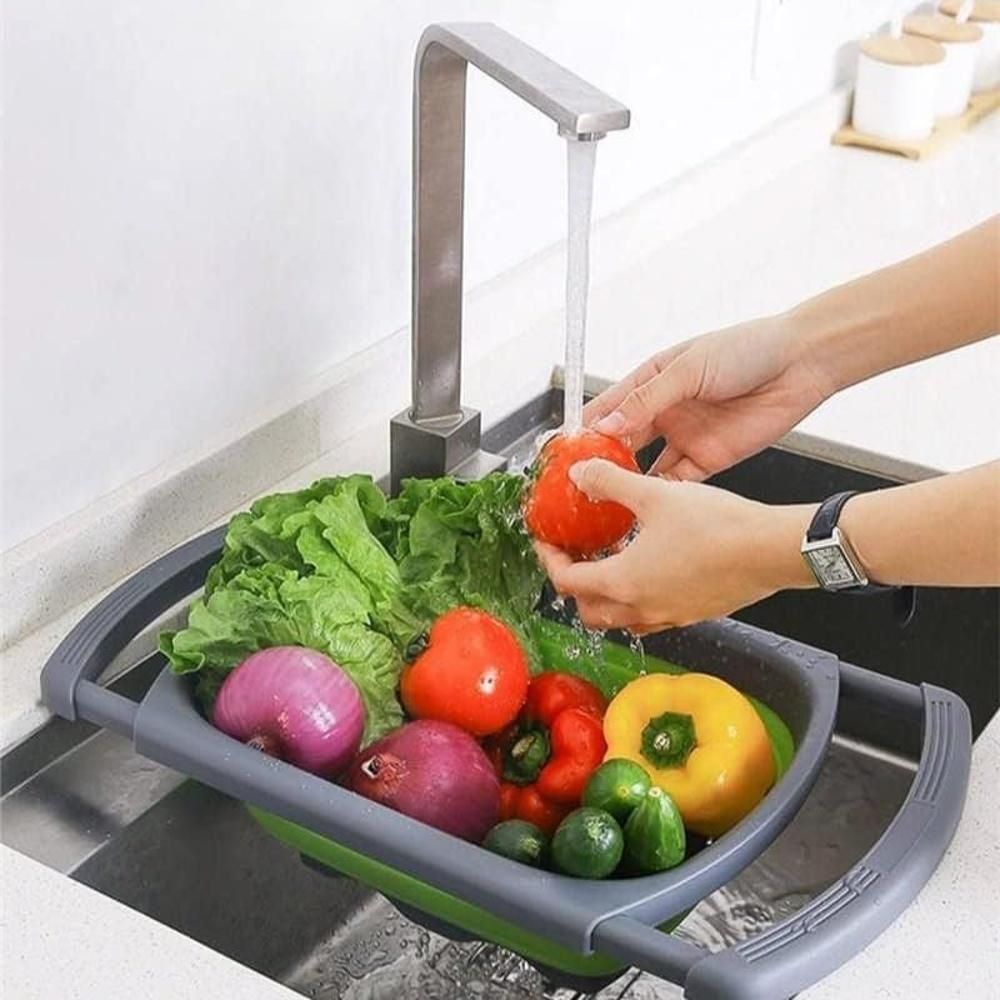 BERAM 40cm Colander, Extendable Handles, Kitchen Strainer, Collapsible, Over the Sink, Rice Drainer, Silicone, Space Saving & Collapsible Kitchen Accessories, Best for Daily Kitchen Storage and Use